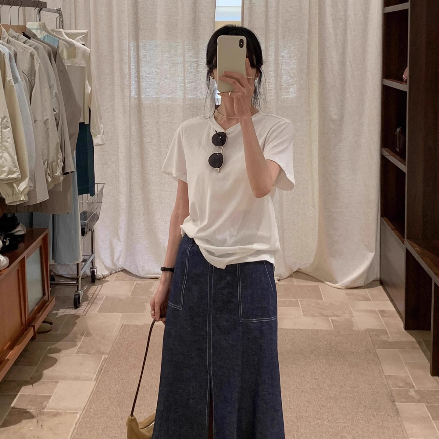 夏季穿搭一整套女新款法式休闲字母印花t恤及踝半身裙两件套