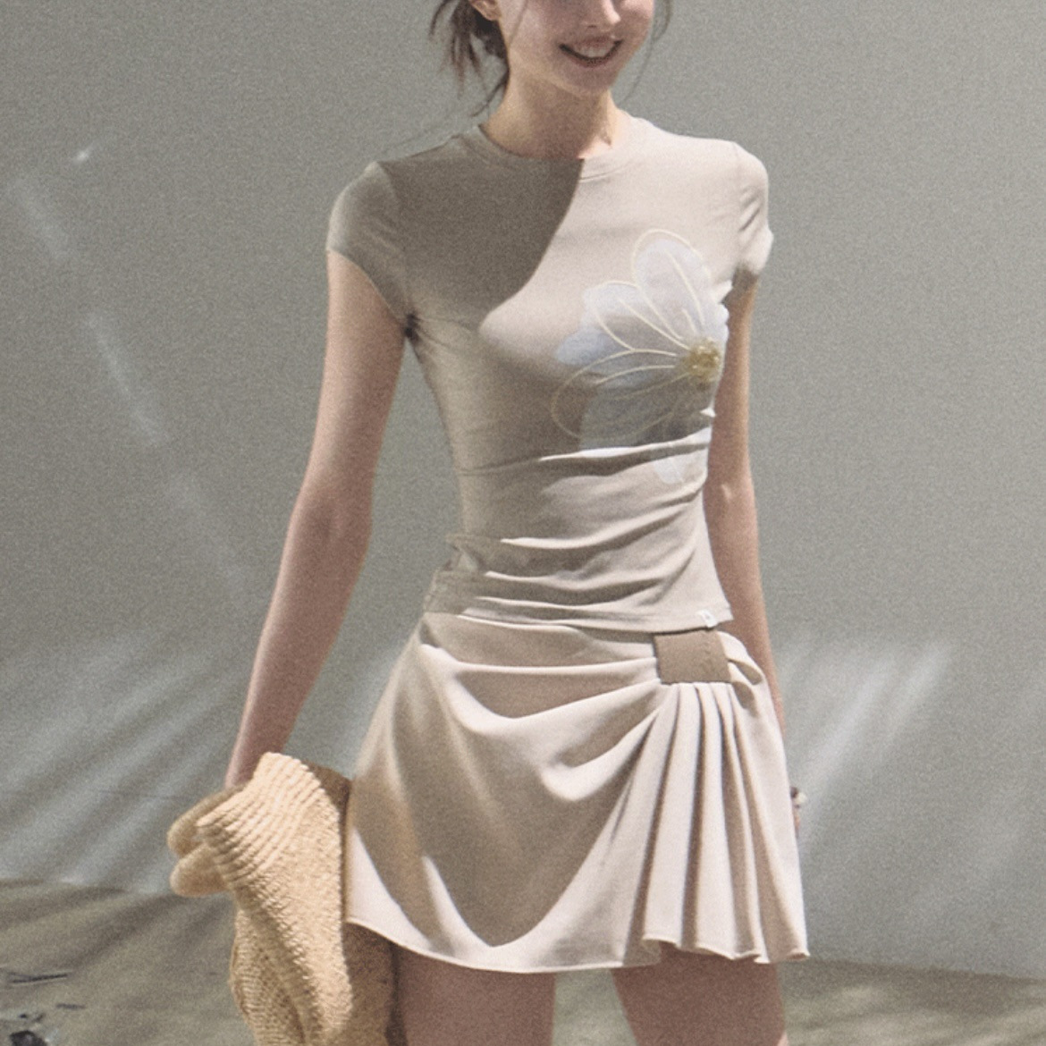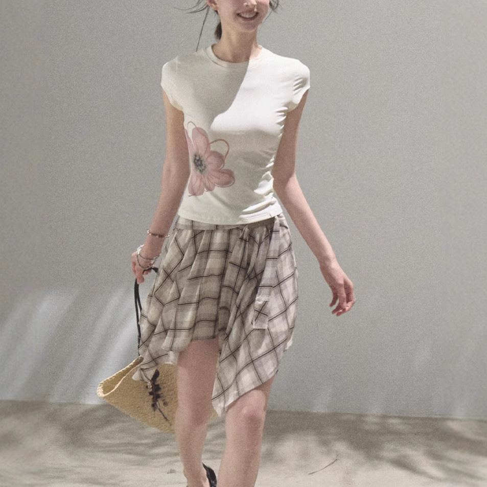 夏季新款微胖显瘦遮肉小个子茶系穿搭搭配一整套奶系两件套女