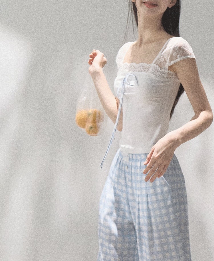 Oakmo Basic*蕾丝拼接蝴蝶结设计凉感亲肤简约短袖T恤上衣