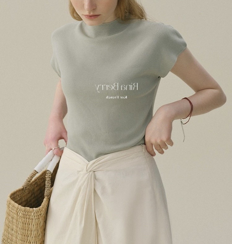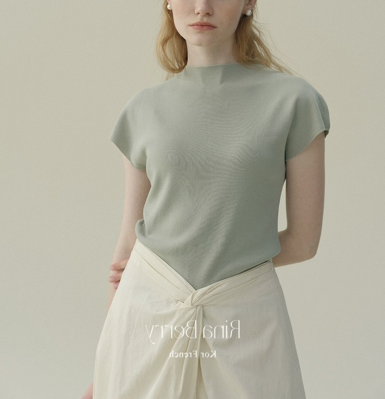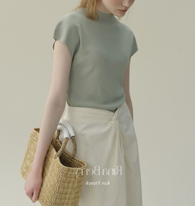 冰丝豆绿色短上衣显瘦短袖针织圆领T恤女薄款