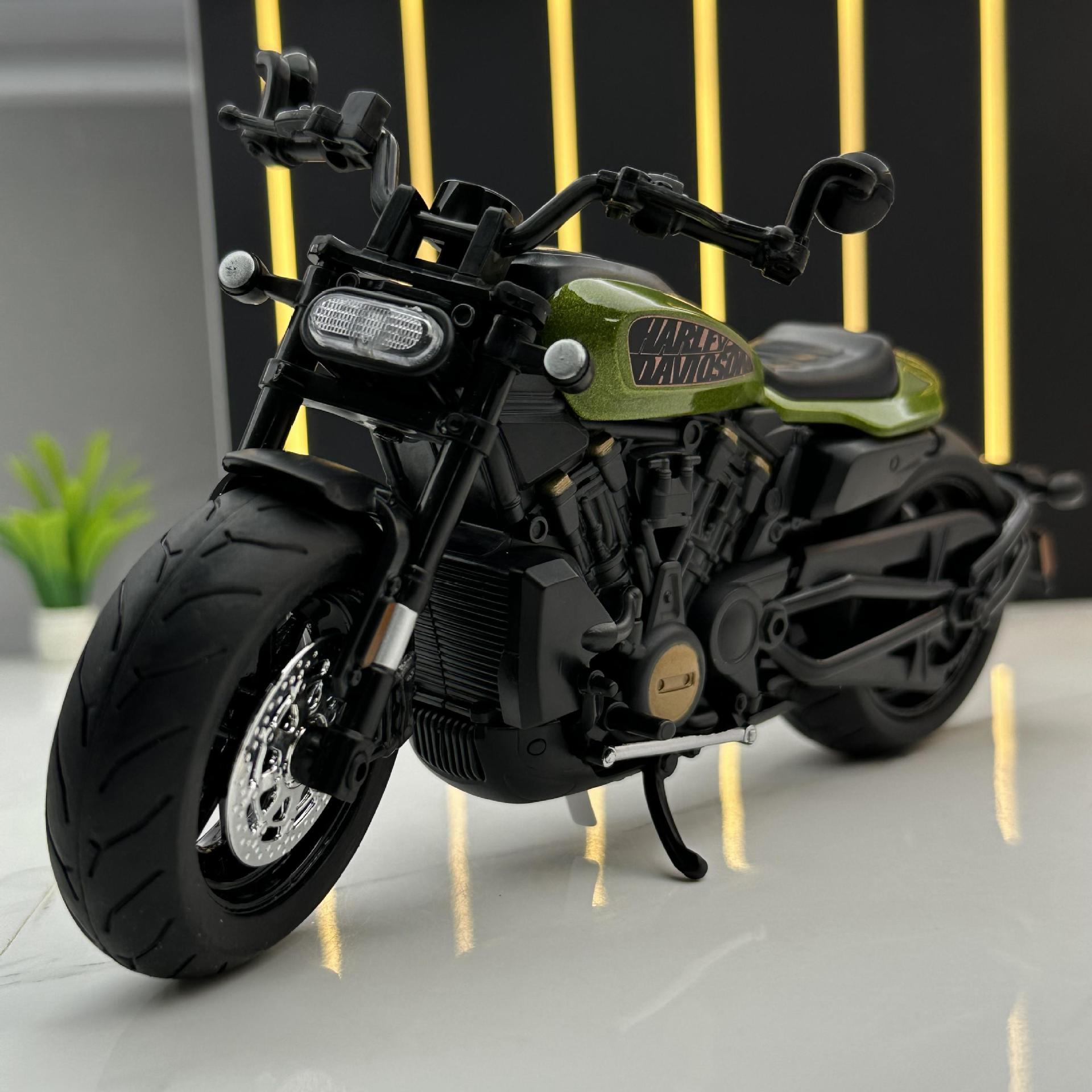 华一合金车模1:12哈雷越野摩托车滑行男孩玩具车灯光模型摆件收藏