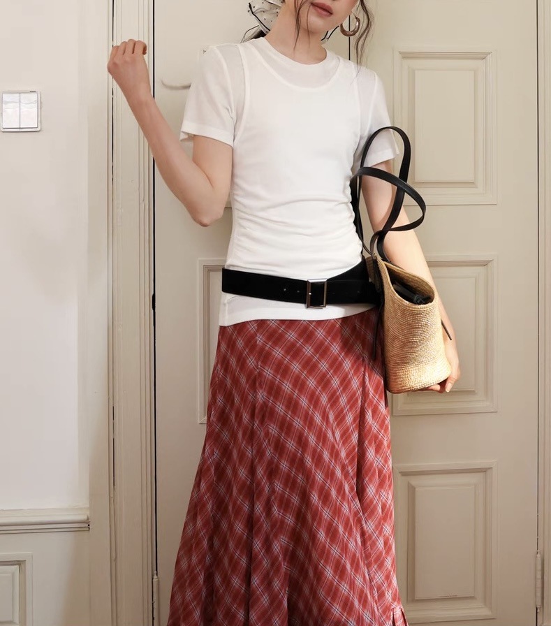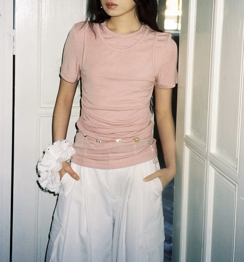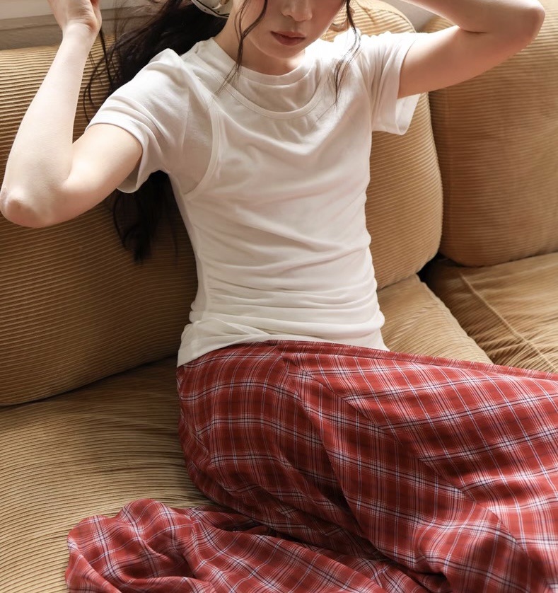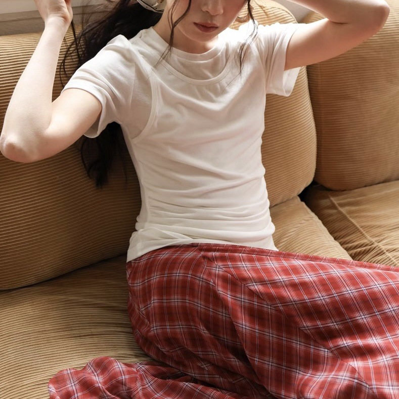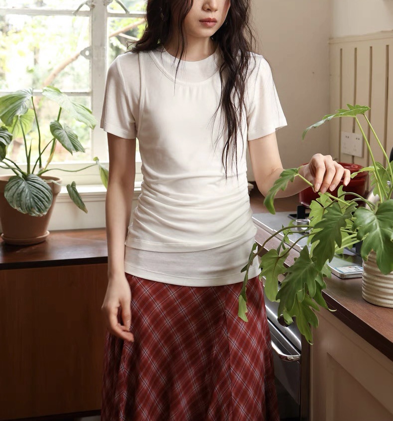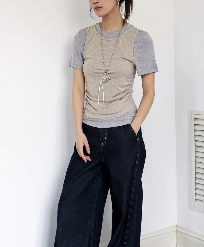 多色莱赛尔圆领收腰显瘦堆叠假两件背心短袖