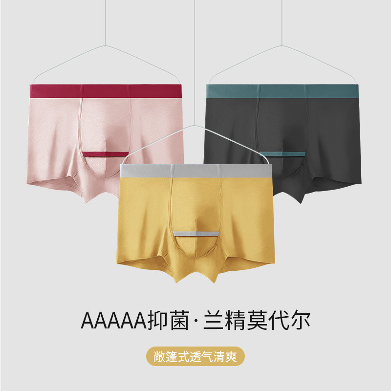 无痕莫代尔男士内裤前开口敞篷式透气平角裤藏红花裆抗菌潮男内裤