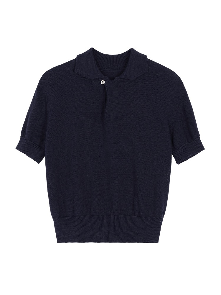 夏季新款经典日版Polo衫舒适显白宽松藏青短袖女