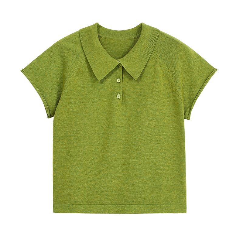夏日苔绿杂色POLO小方领宽松休闲短袖