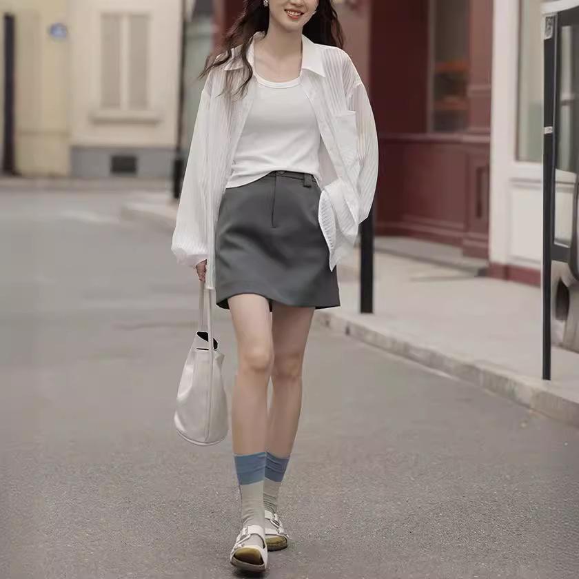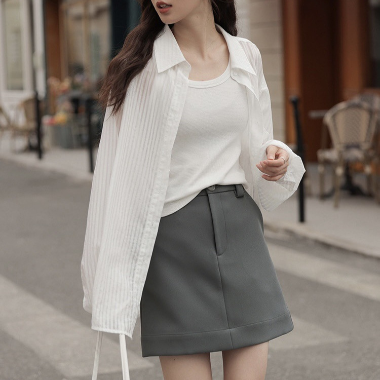 1313轻盈透气肌理感天丝条纹白色衬衫夏女宽松透气上衣防晒衫