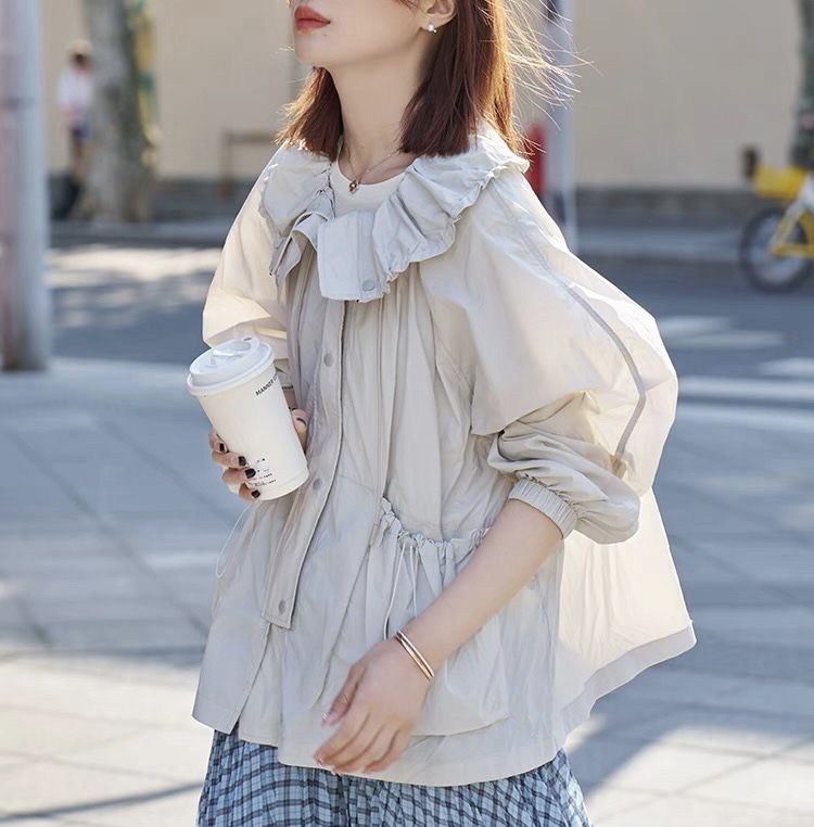 「白描」'西西里盐雾'甄选原纱防晒服女荷叶领防晒衣外套