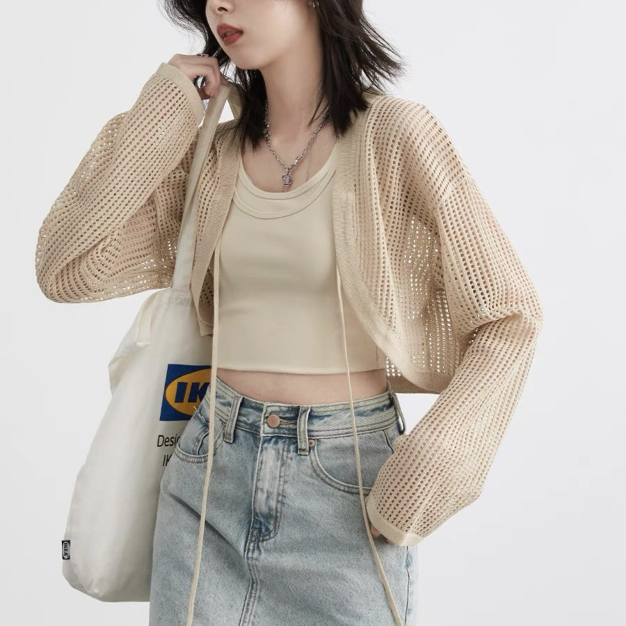 「松弛漫旅」夏季气质chic系带镂空小衫防晒罩衫开衫外套