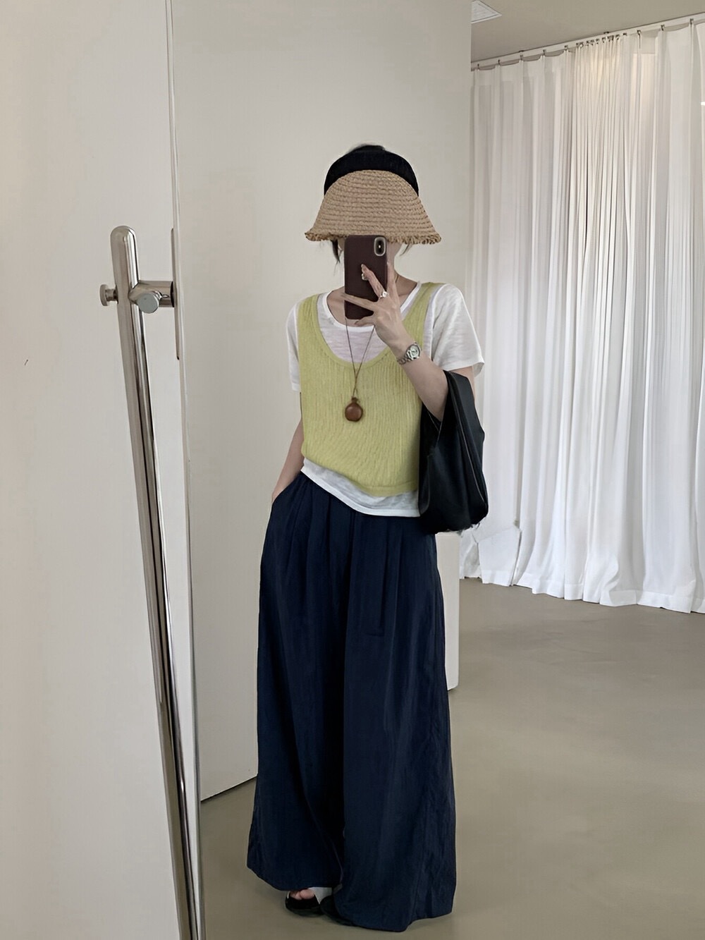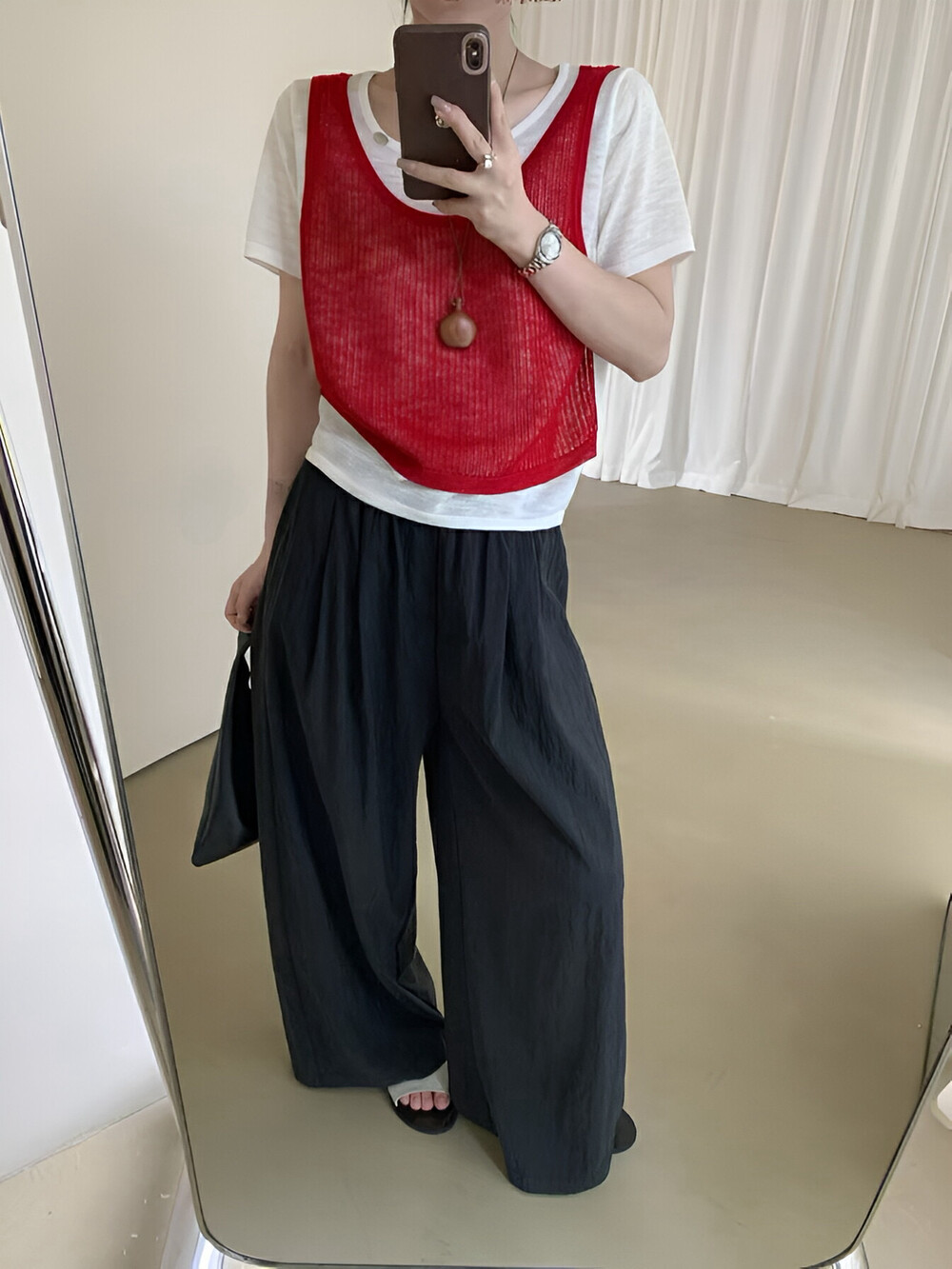 纽扣装饰桃心领 针织上衣