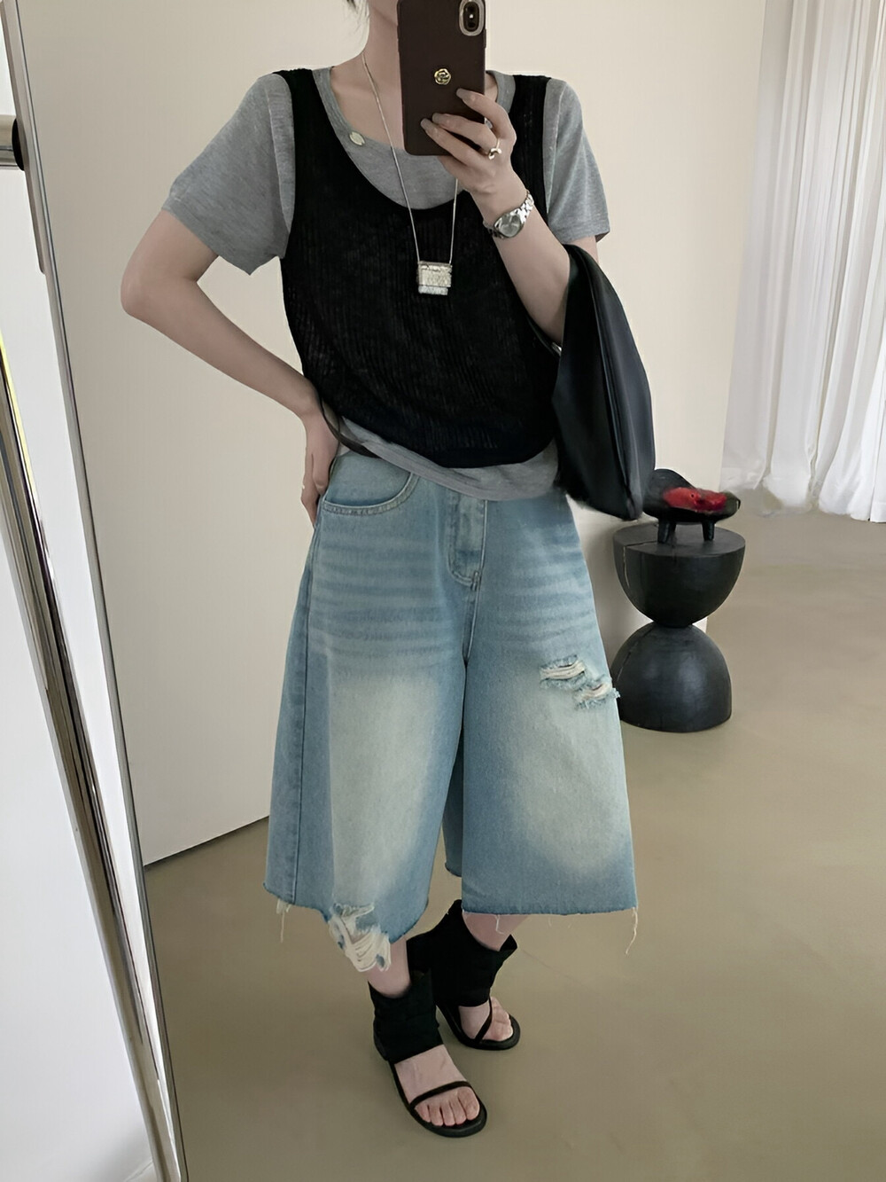 夏季薄款黑色速干工装休闲短裤宽松大码多口袋五分裤青年中裤潮牌