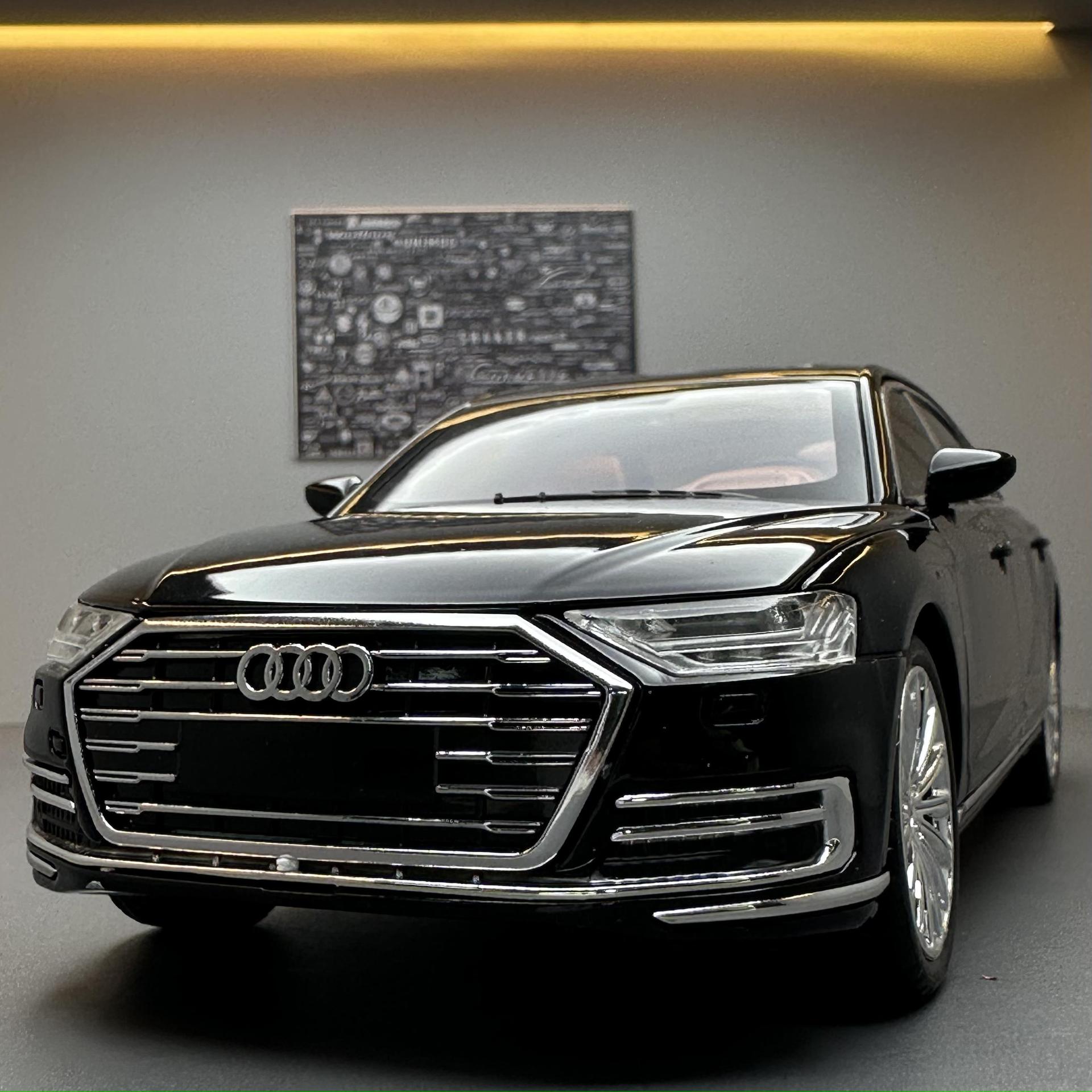 车致合金车模1:24奥迪A8轿车带声光回力玩具汽车音乐模型摆件藏品