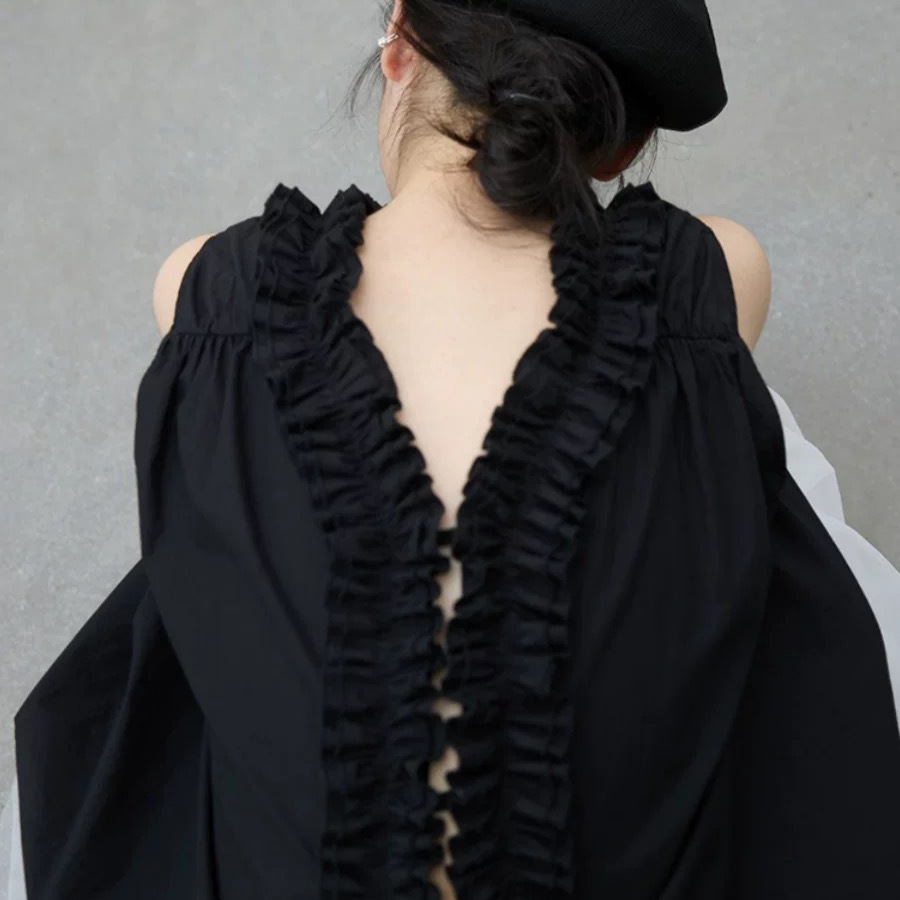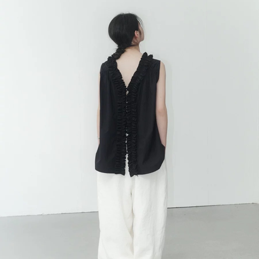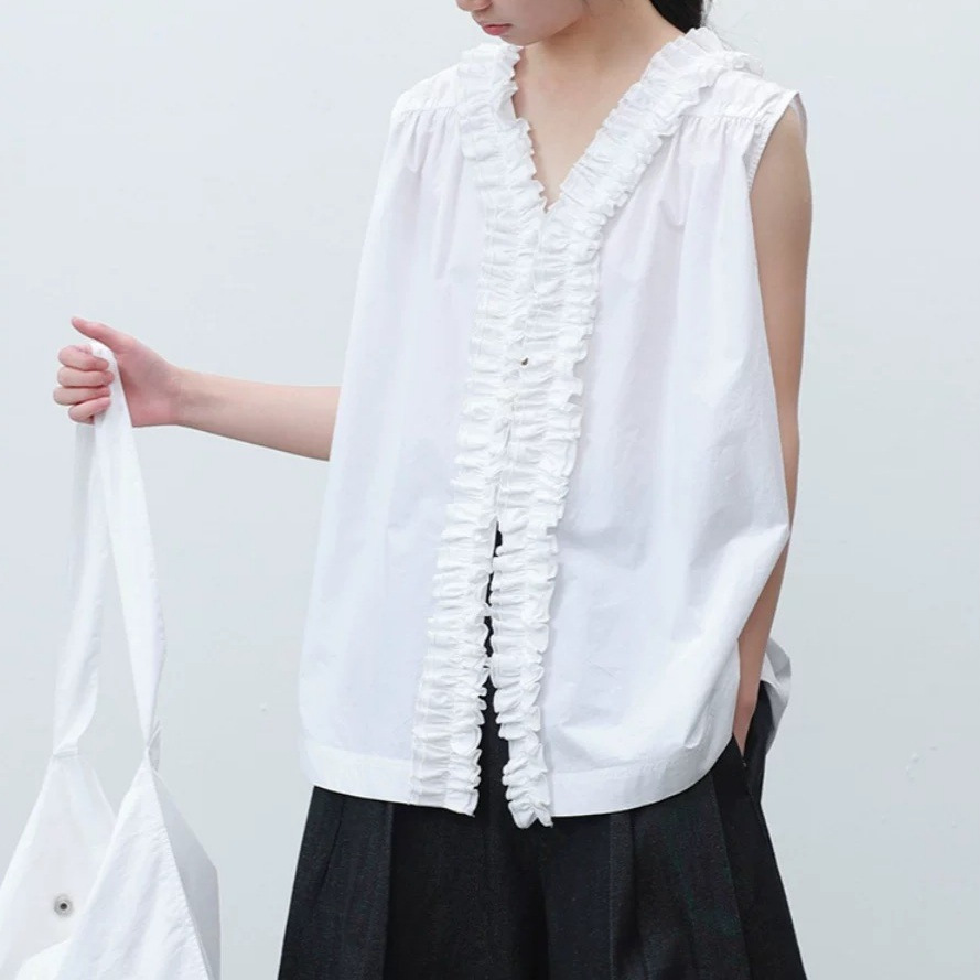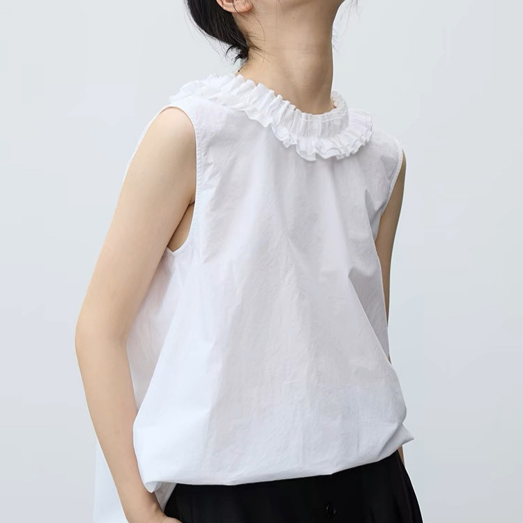 花瓣领无袖衬衫两面穿小衫女白色法式通勤上衣