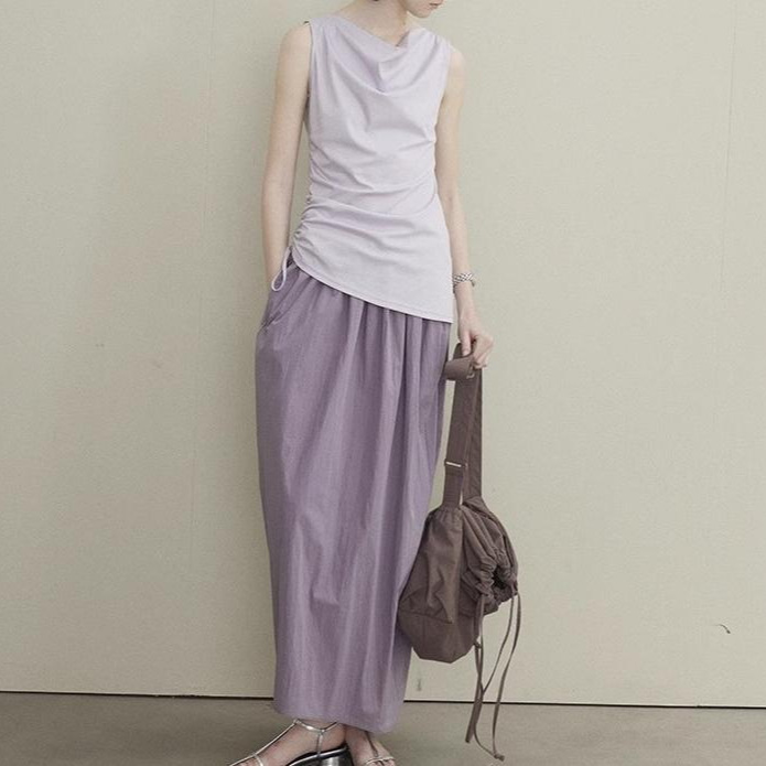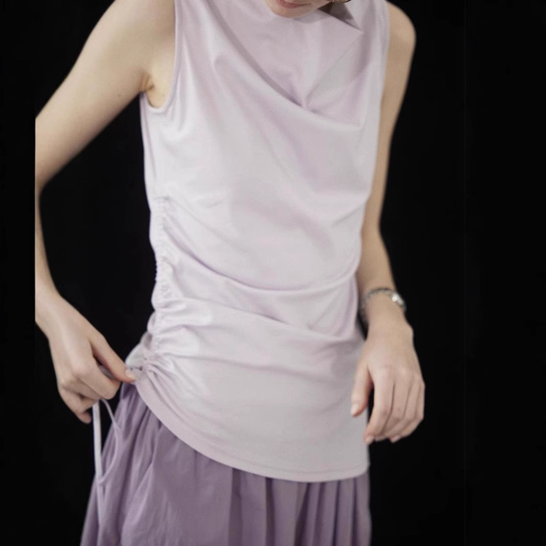 25夏女气质收腰堆堆领无袖紫色法式上身巨显瘦巨美上衣小衫