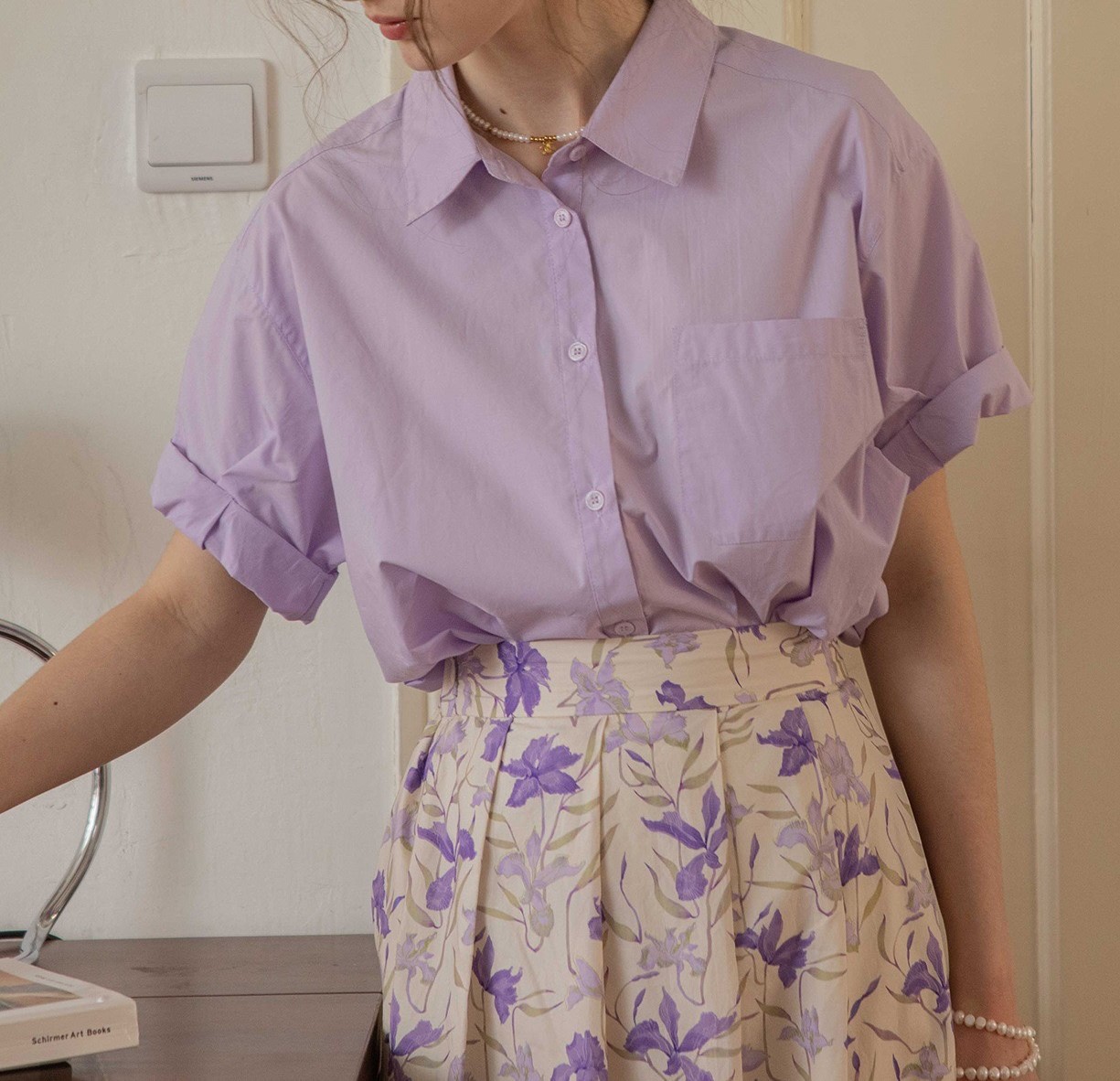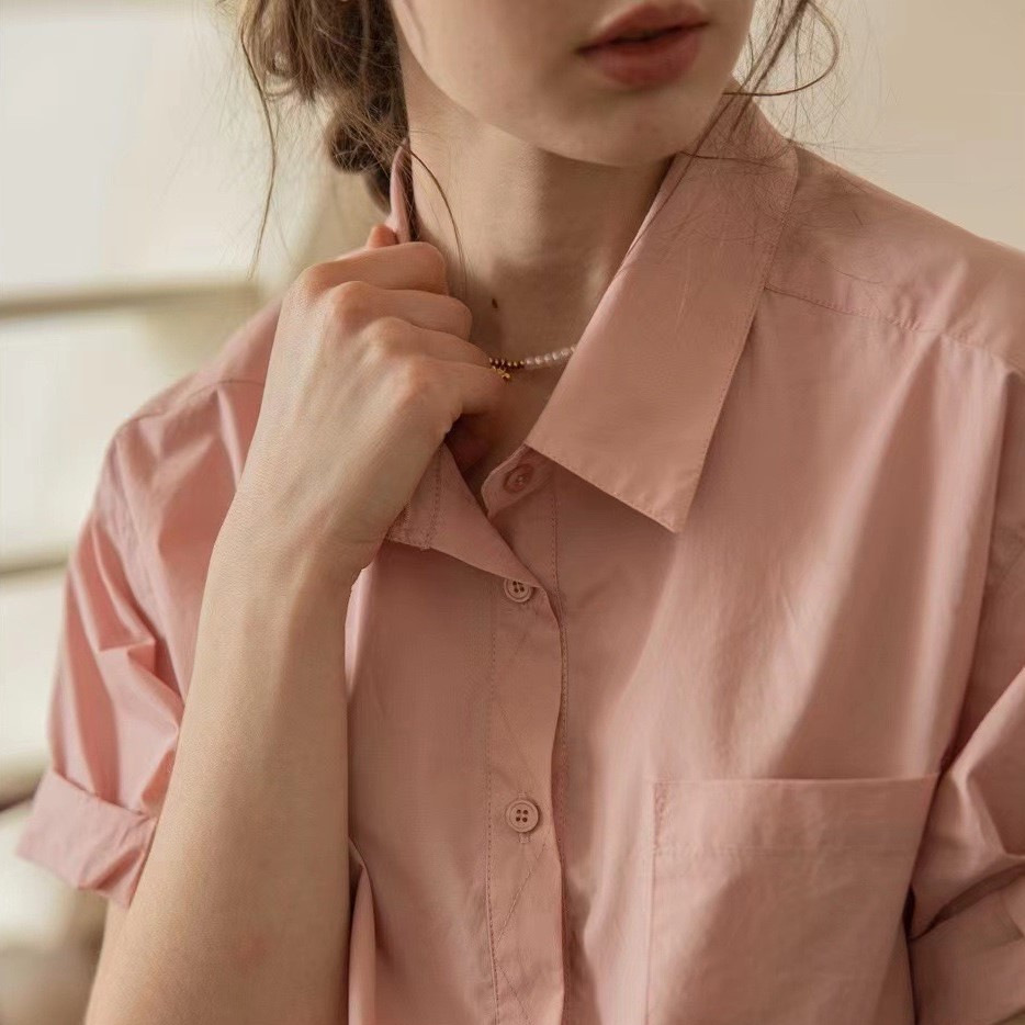 法式休闲百搭衬衣上衣卷袖60支棉复古短袖衬衫女夏季新款