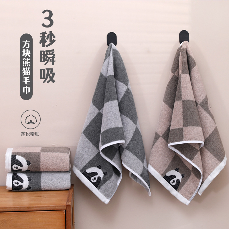 纯棉毛巾全股方格拼色提花家用毛巾吸水不易掉毛洗脸面巾刺绣
