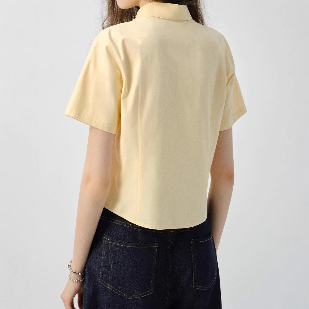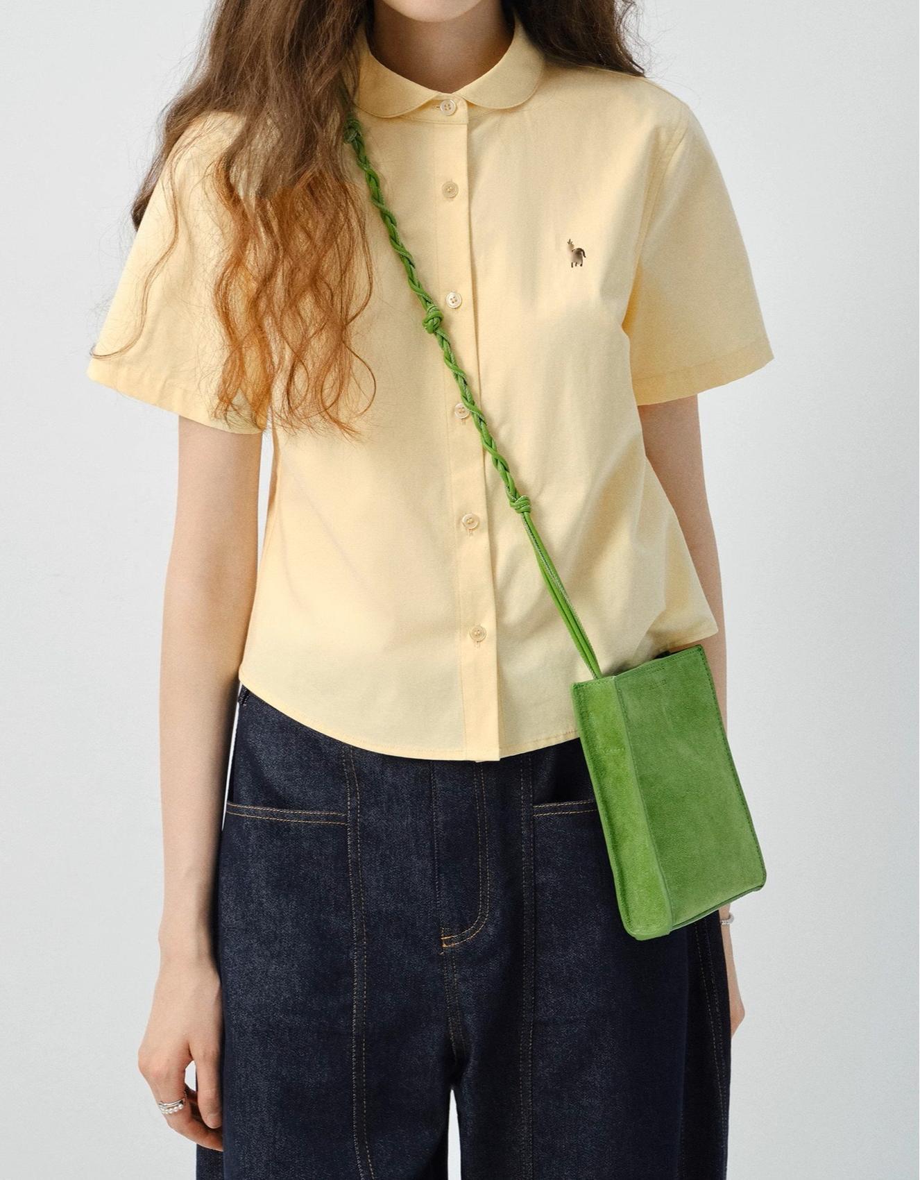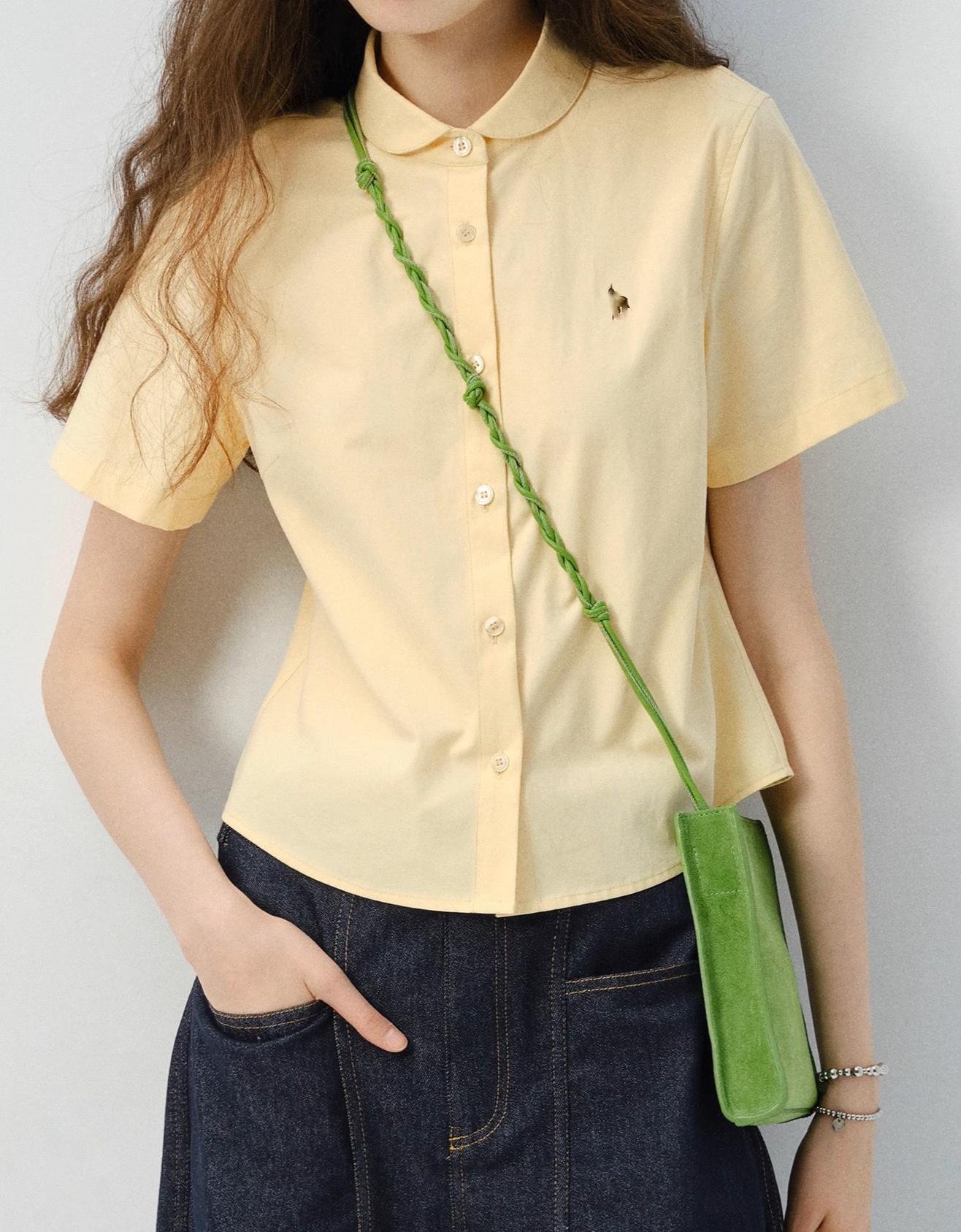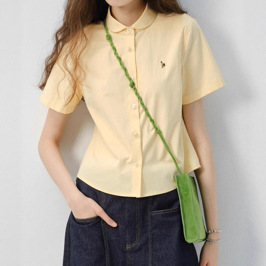 VGEA 短袖衬衫女2025新款夏气质减龄娃娃领正肩显瘦绣花衬衣