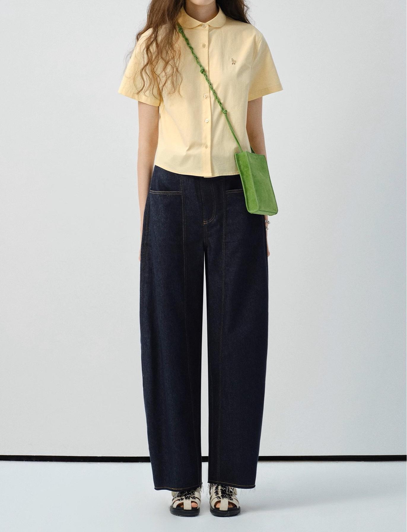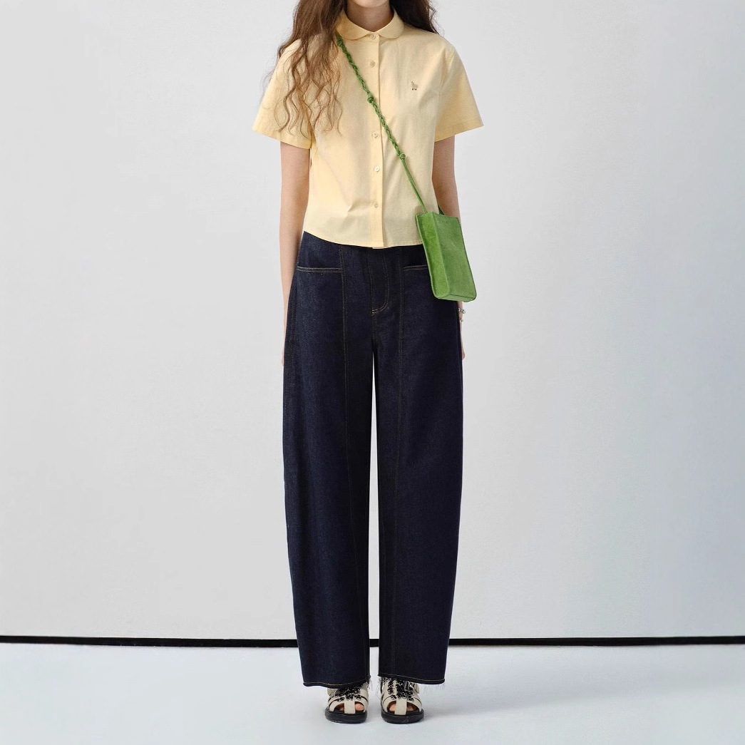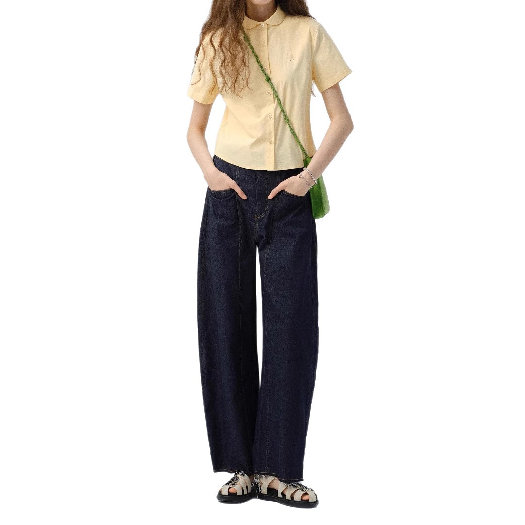 VGEA 短袖衬衫女2025新款夏气质减龄娃娃领正肩显瘦绣花衬衣