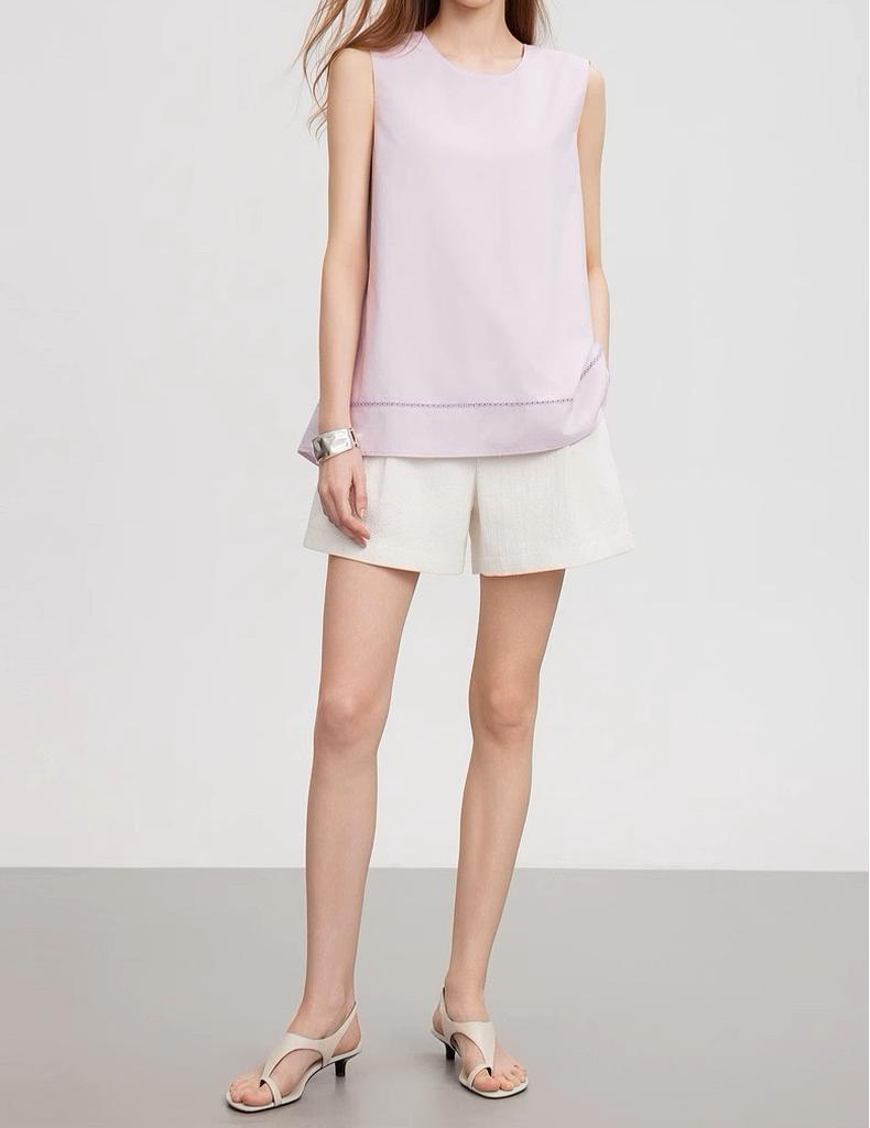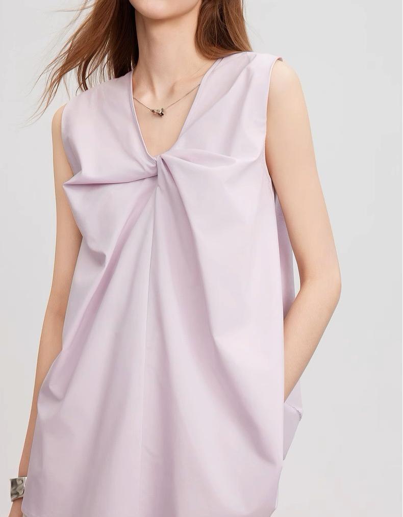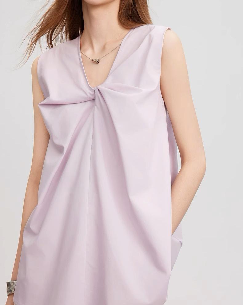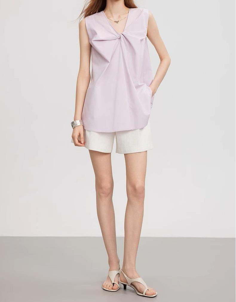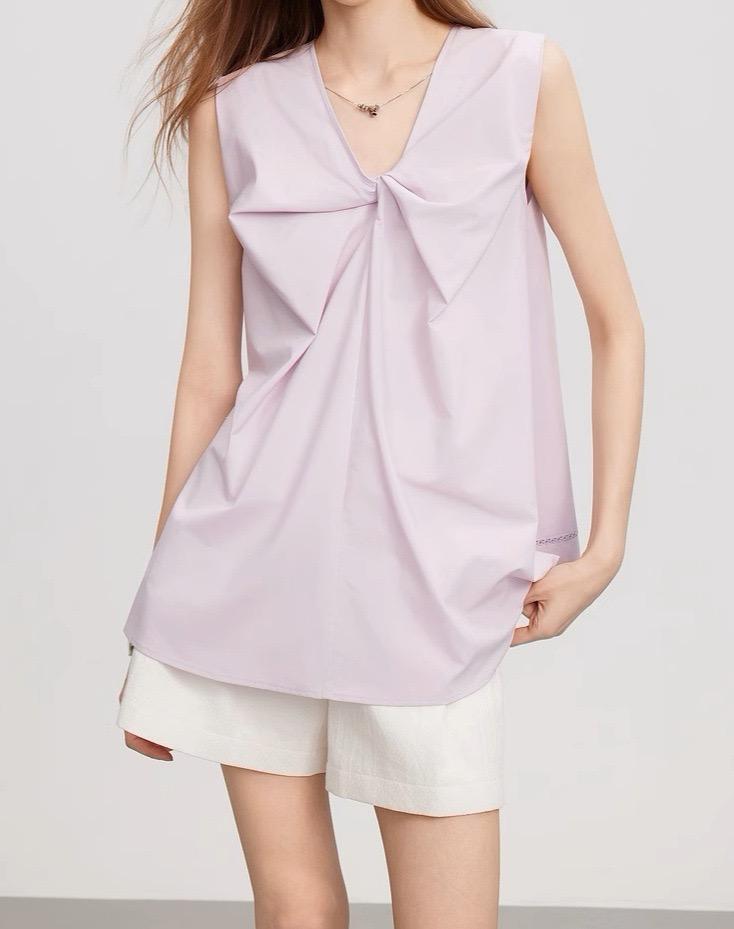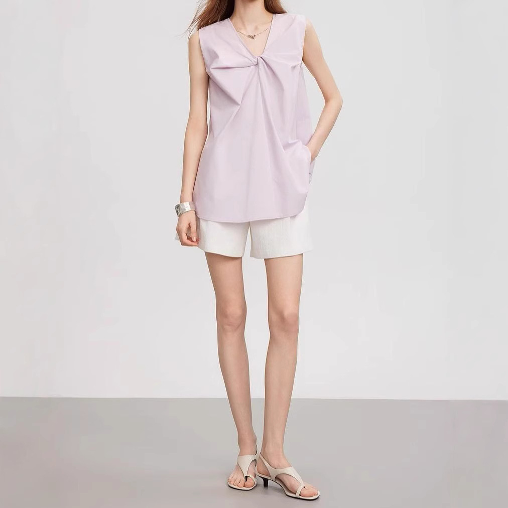 ELEL优雅扭结上衣女25夏季新款圆领通勤无袖背心衬衫