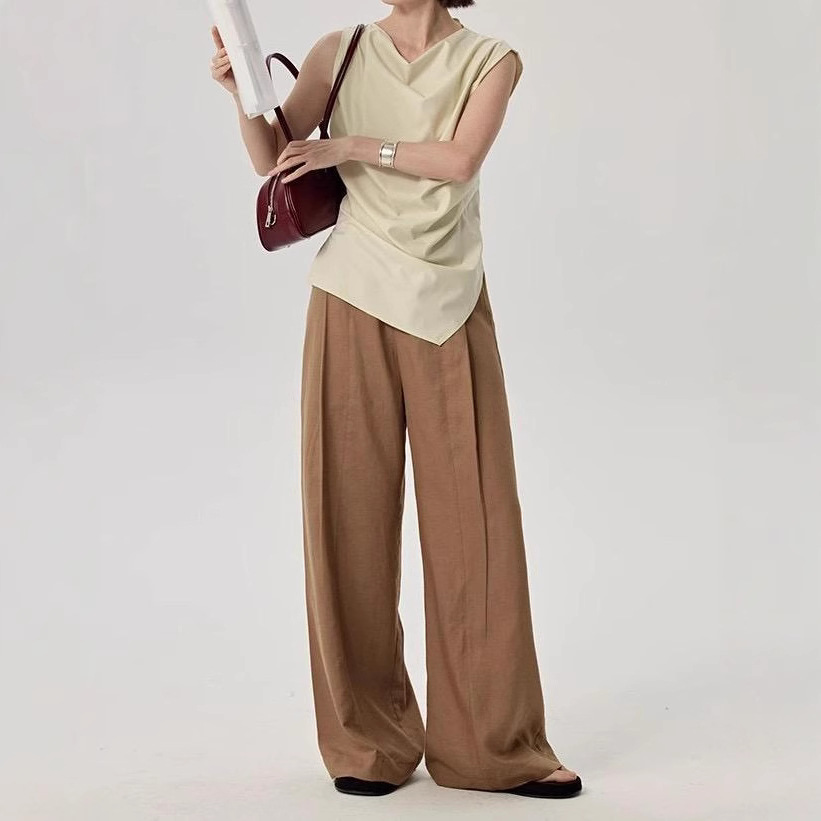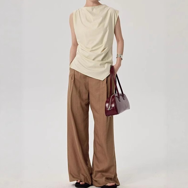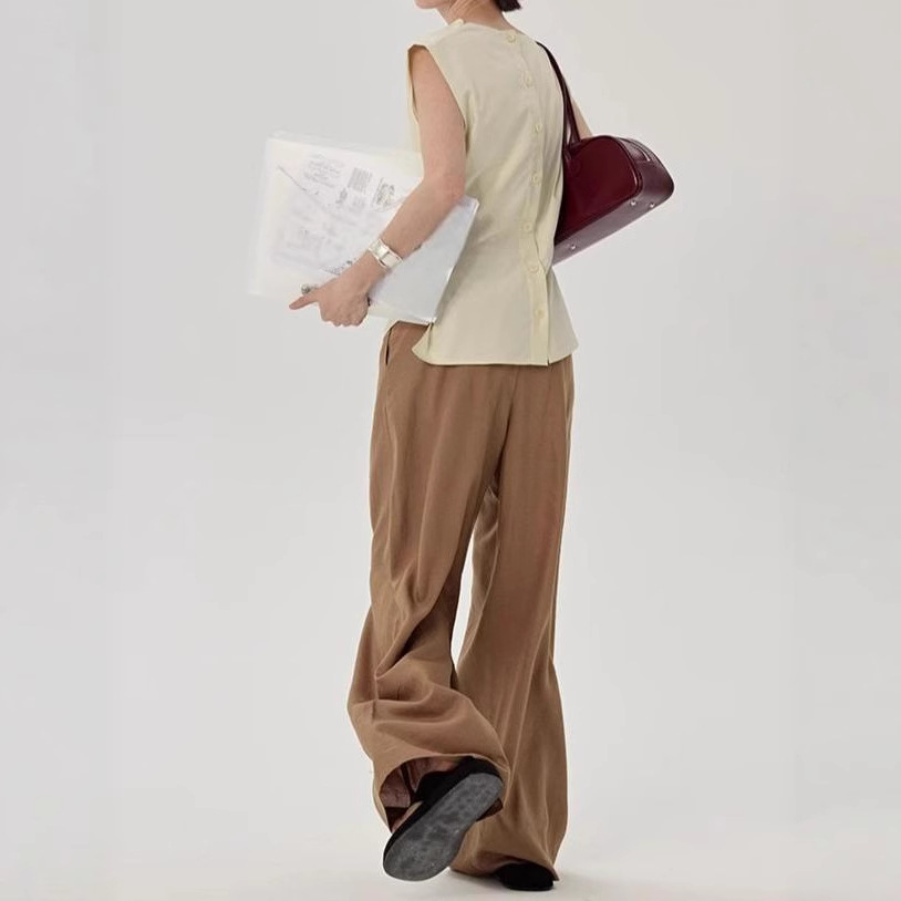 高级品质~气质通勤荡领无袖衬衫女夏季别致修身衬衫小飞袖上衣