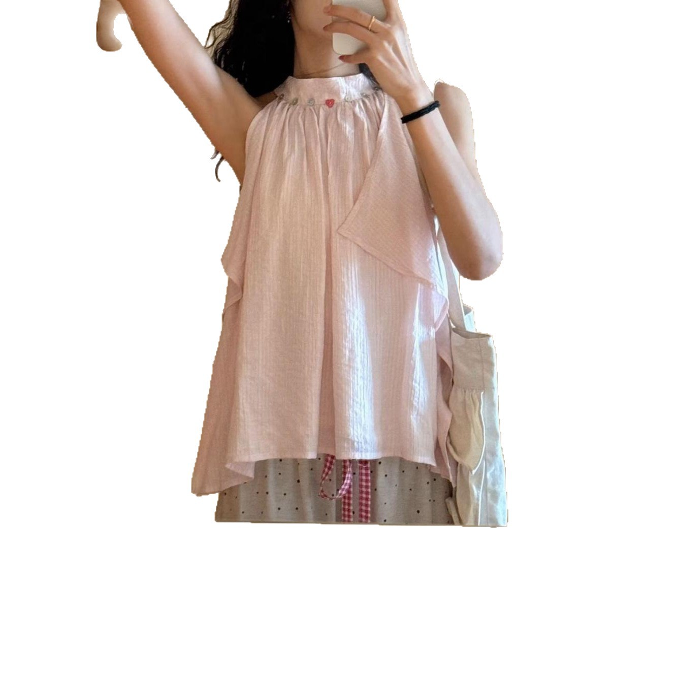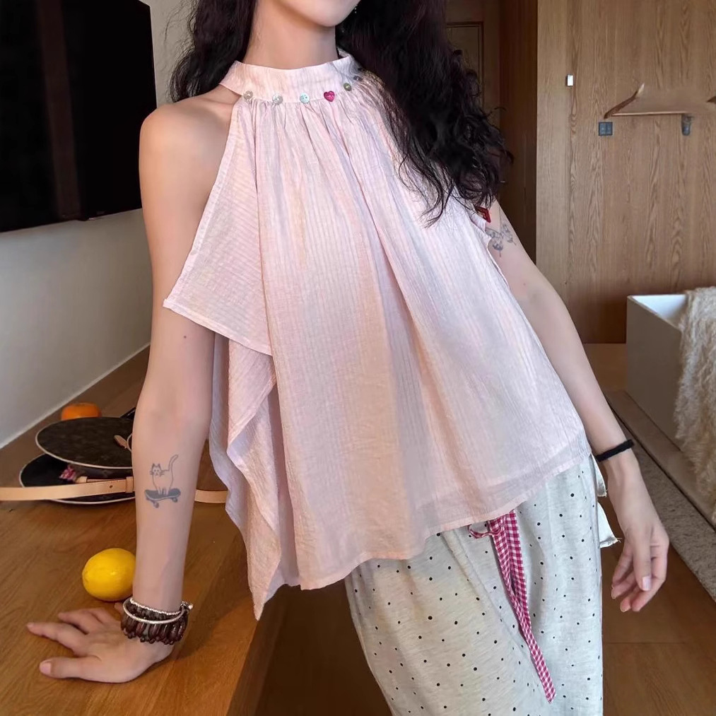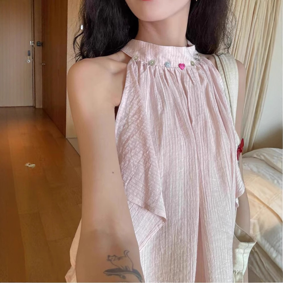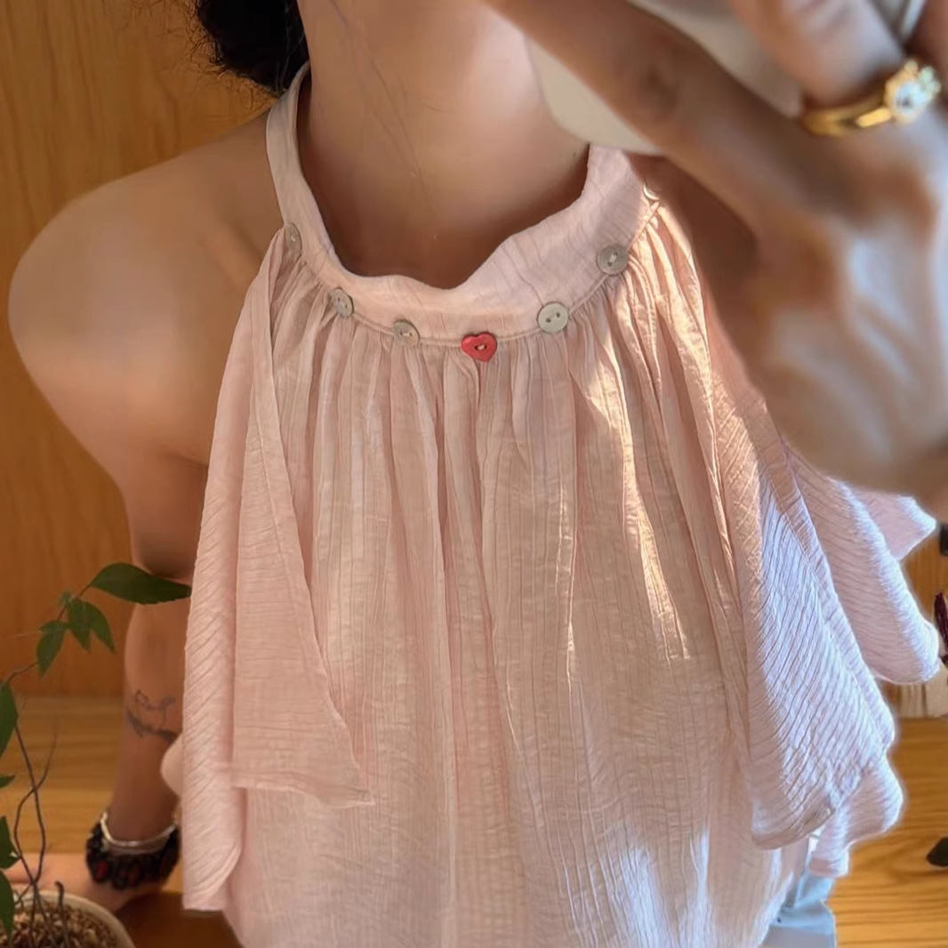 “柔雾玫瑰”美丽女孩的夏天显瘦遮肉挂脖高级质感衬衫