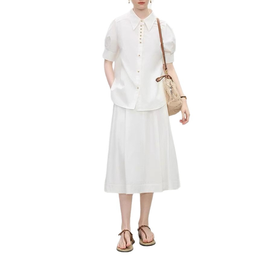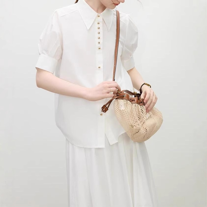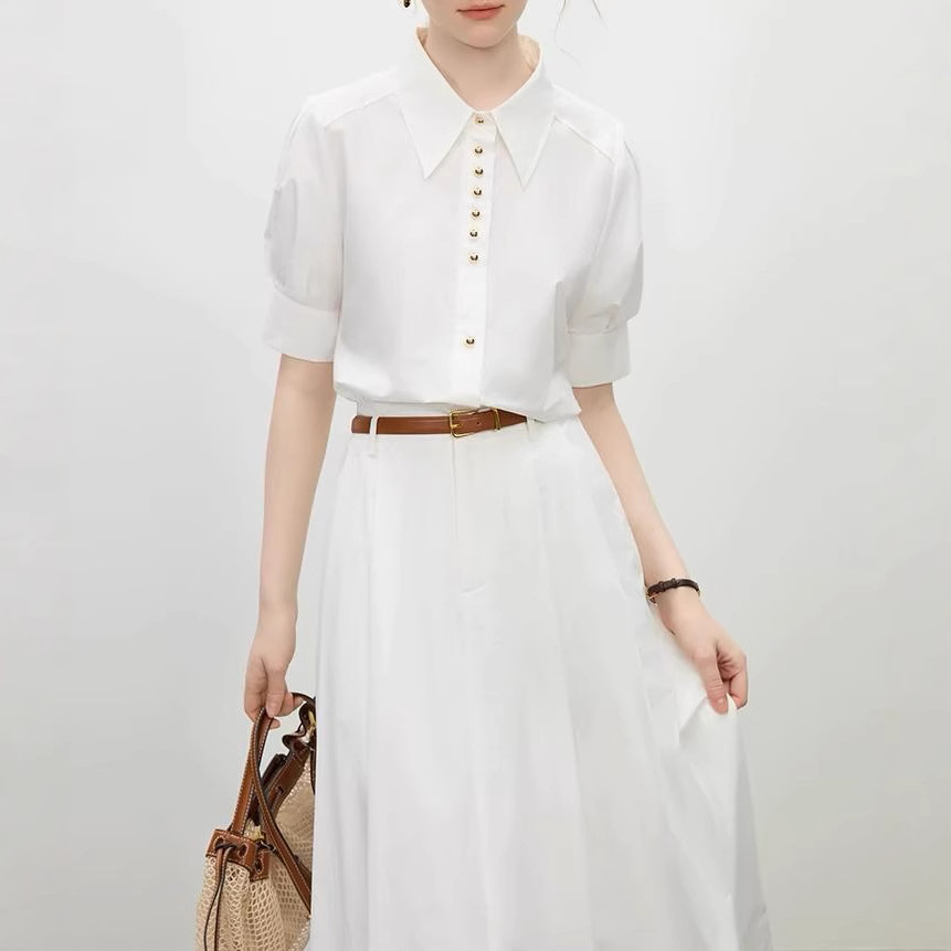 气质通勤翻领短袖衬衫女2025夏新款教资面试正装上衣