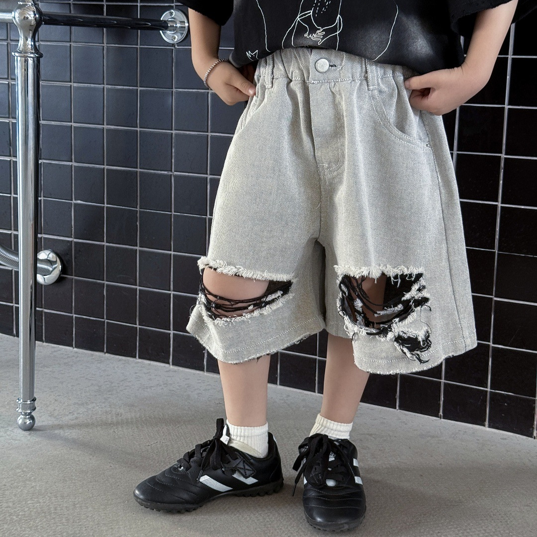 2025年夏季男童儿童男宝美式复古牛仔直筒宽松阔腿中裤新款时尚潮