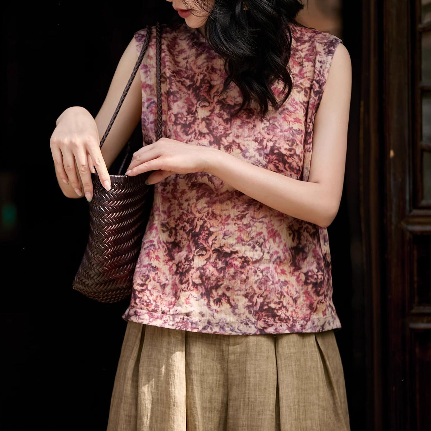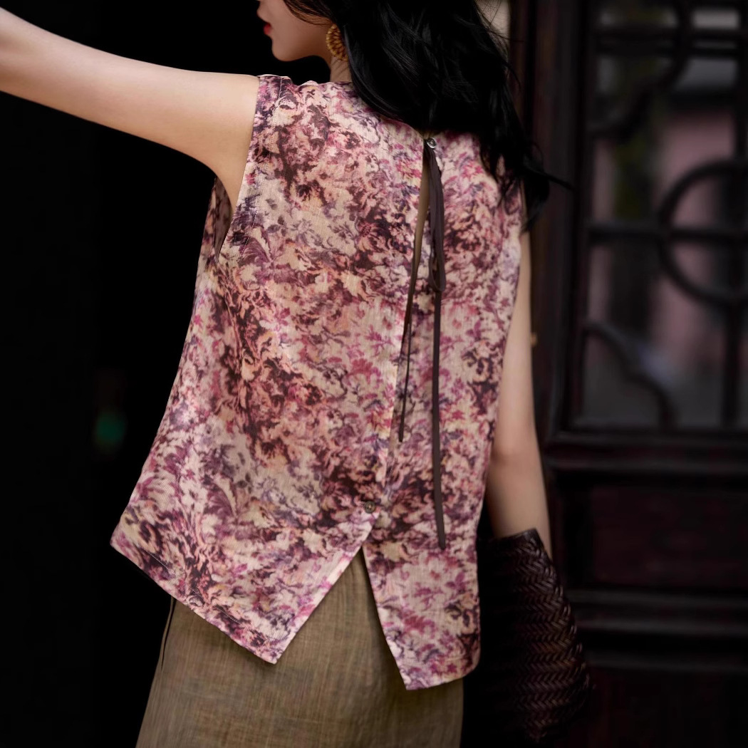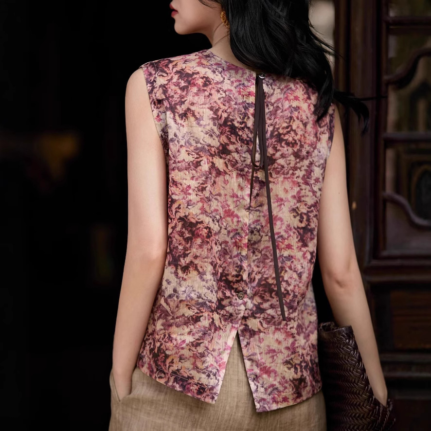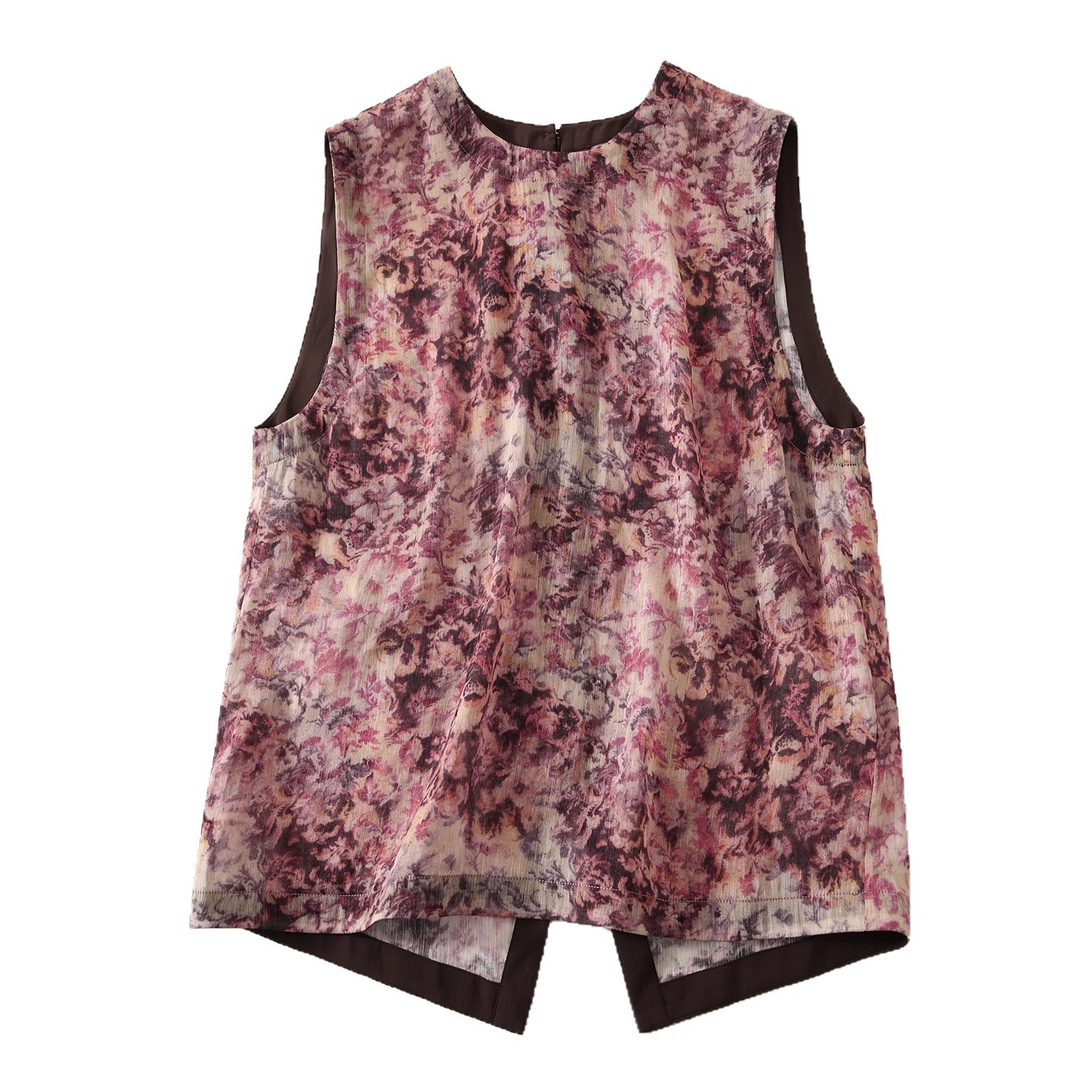气质绝佳 夏日必备 印花圆领无袖上衣女25百搭新款小衫