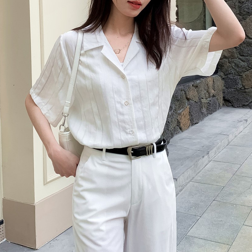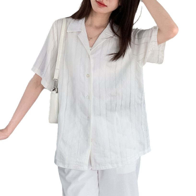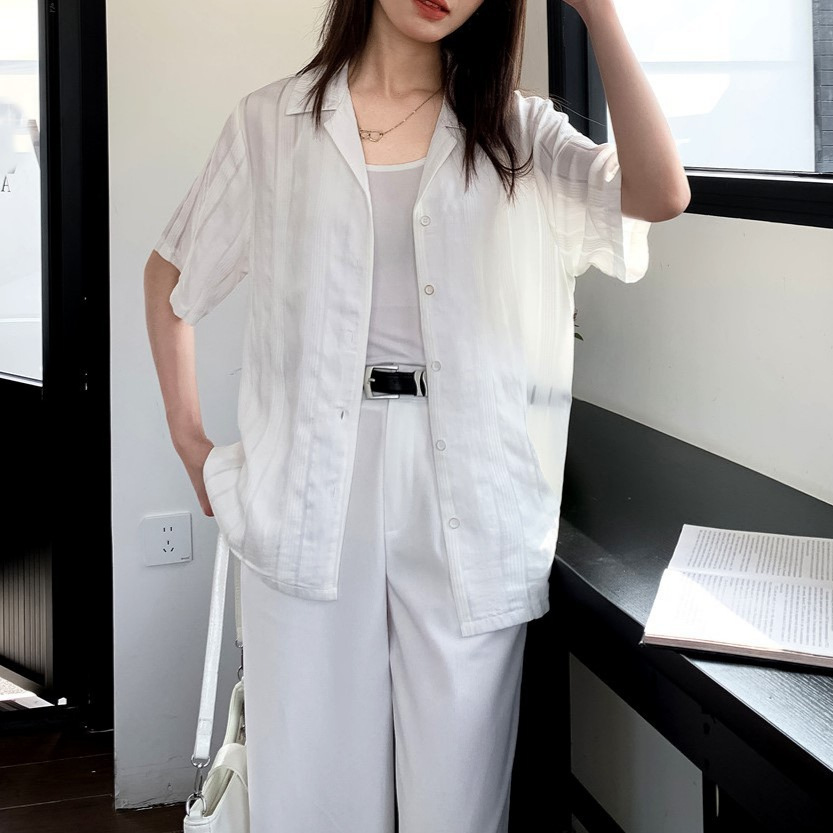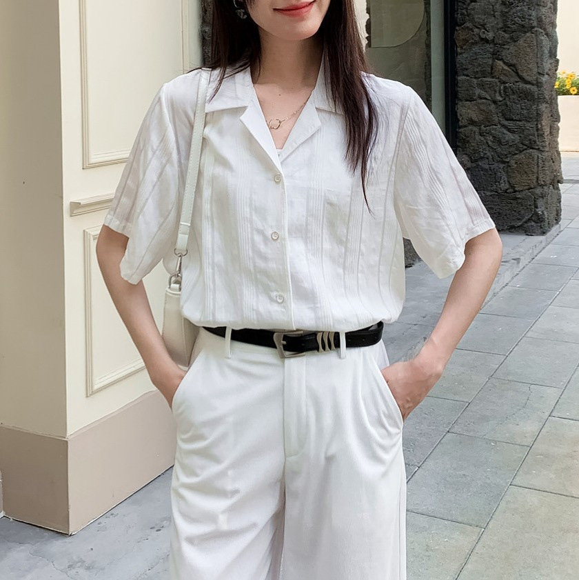 品质推荐~古巴领条纹衬衫女夏法式小众复古休闲上衣