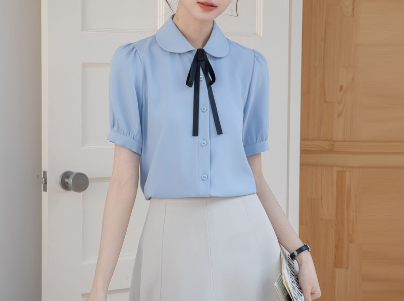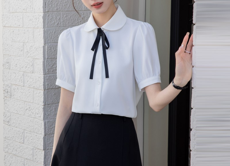 白色雪纺蝴蝶结衬衫女面试短袖夏季新款上衣小个子穿搭职业装衬衣
