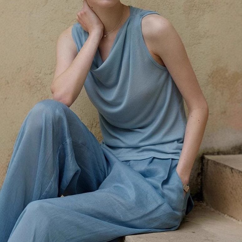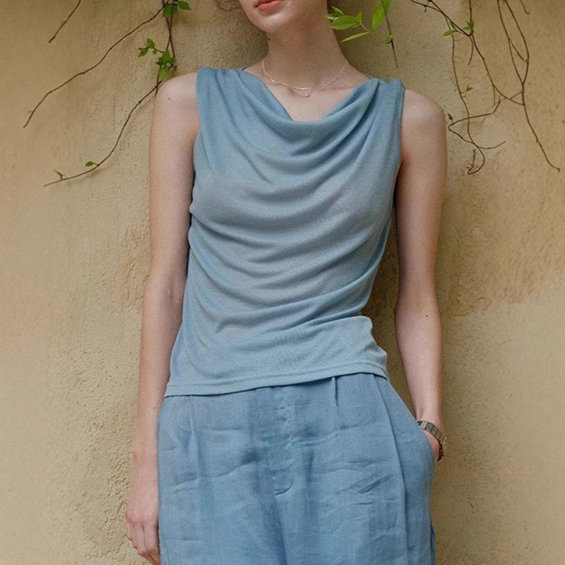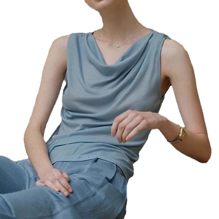 夏日基础柔软亲肤无袖荡领堆堆领背心小衫女新款