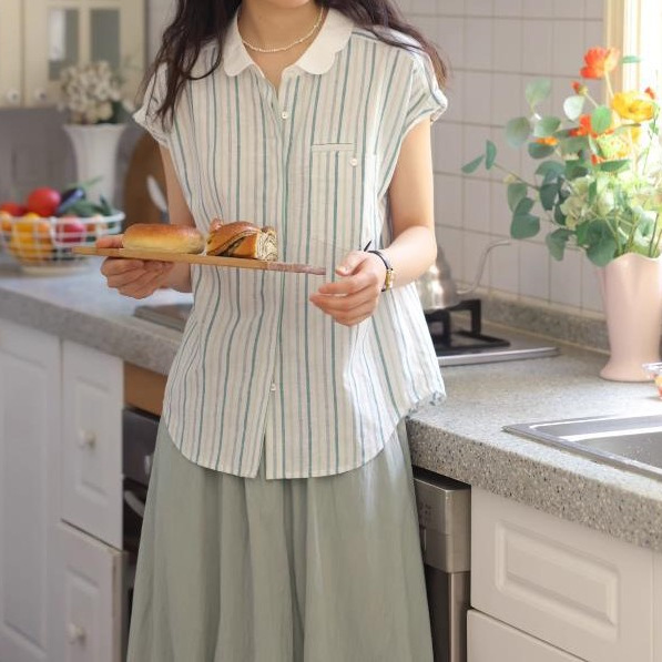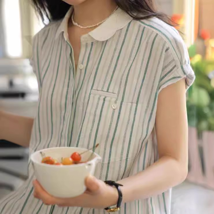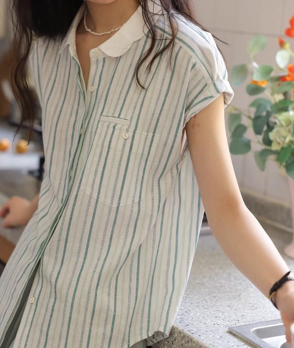 法式亚麻连袖衬衫女夏季显瘦高级质感短袖衬衣