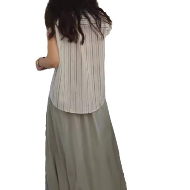 夏季少女感蕾丝边蝴蝶结拼接半身裙女高腰显瘦百搭A字蛋糕短裙