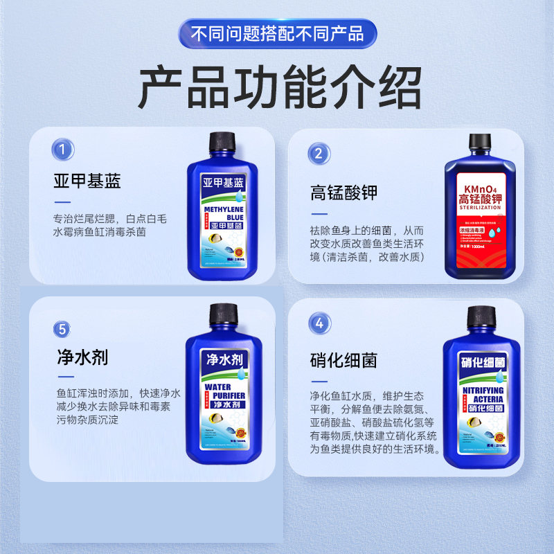 - 535ml组合装-亚甲基蓝+高锰酸钾+硝化细菌(送稀释工具)