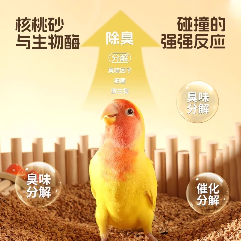 鹦鹉垫料天然核桃砂鸟类鸟笼粪便除臭木屑繁殖箱雏幼鸟屎