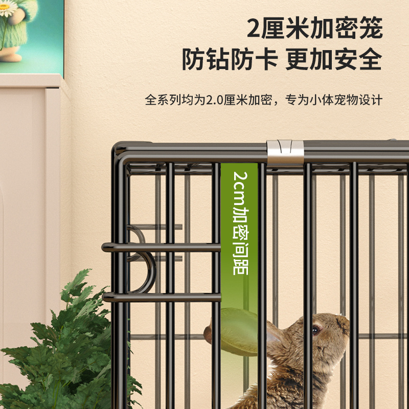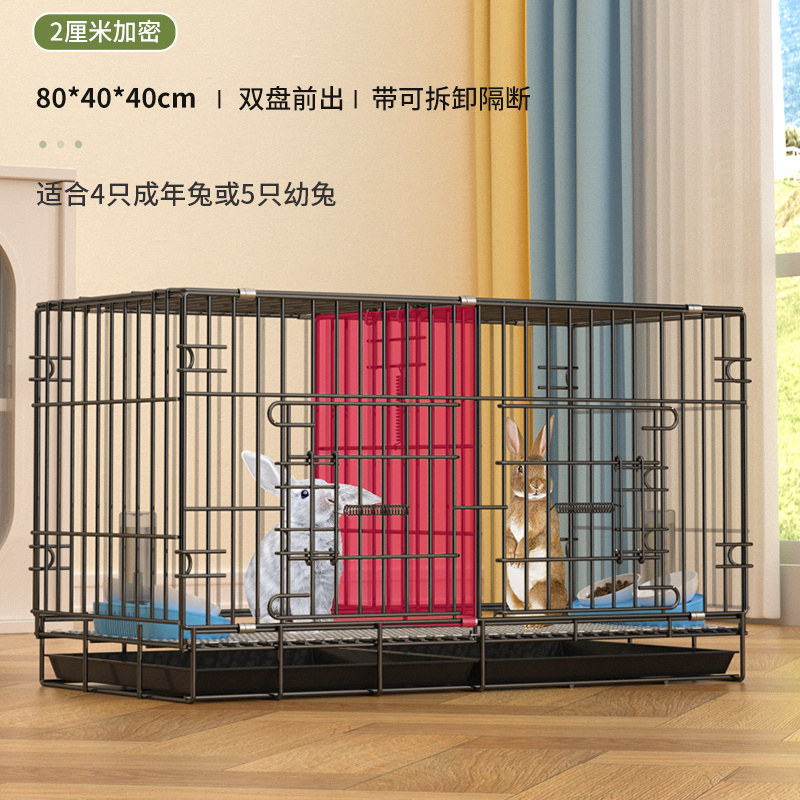 - 黑色【加密隔断80*40*46】送托盘+双碗+脚垫+草窝+饮水器+兔绳