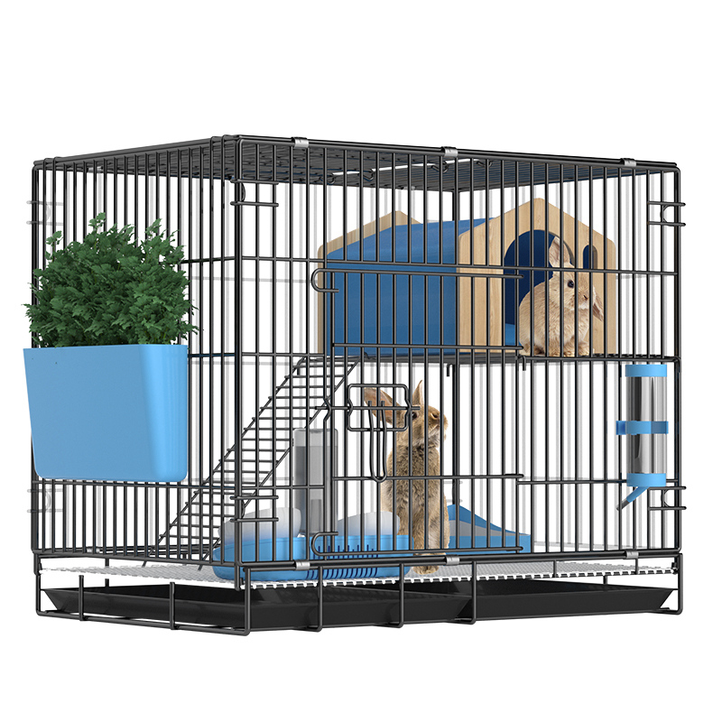 - 蓝色【加密双层60*40*50】送托盘+双碗+脚垫+草窝+饮水器+兔绳