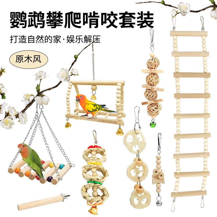 鹦鹉玩具套餐原木色8件套鹦鹉啃咬玩耍原木秋千楼梯