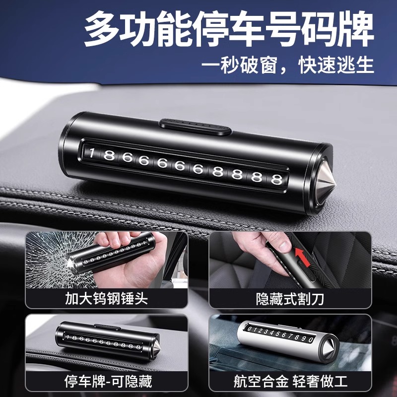 汽车临时停车号码牌移挪车电话牌四合一安全锤破窗器带割刀高级感