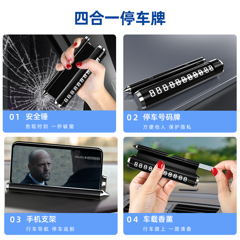 - 【黑色】防晒合金-停车牌+可隐藏+安全锤+支架+香薰1条