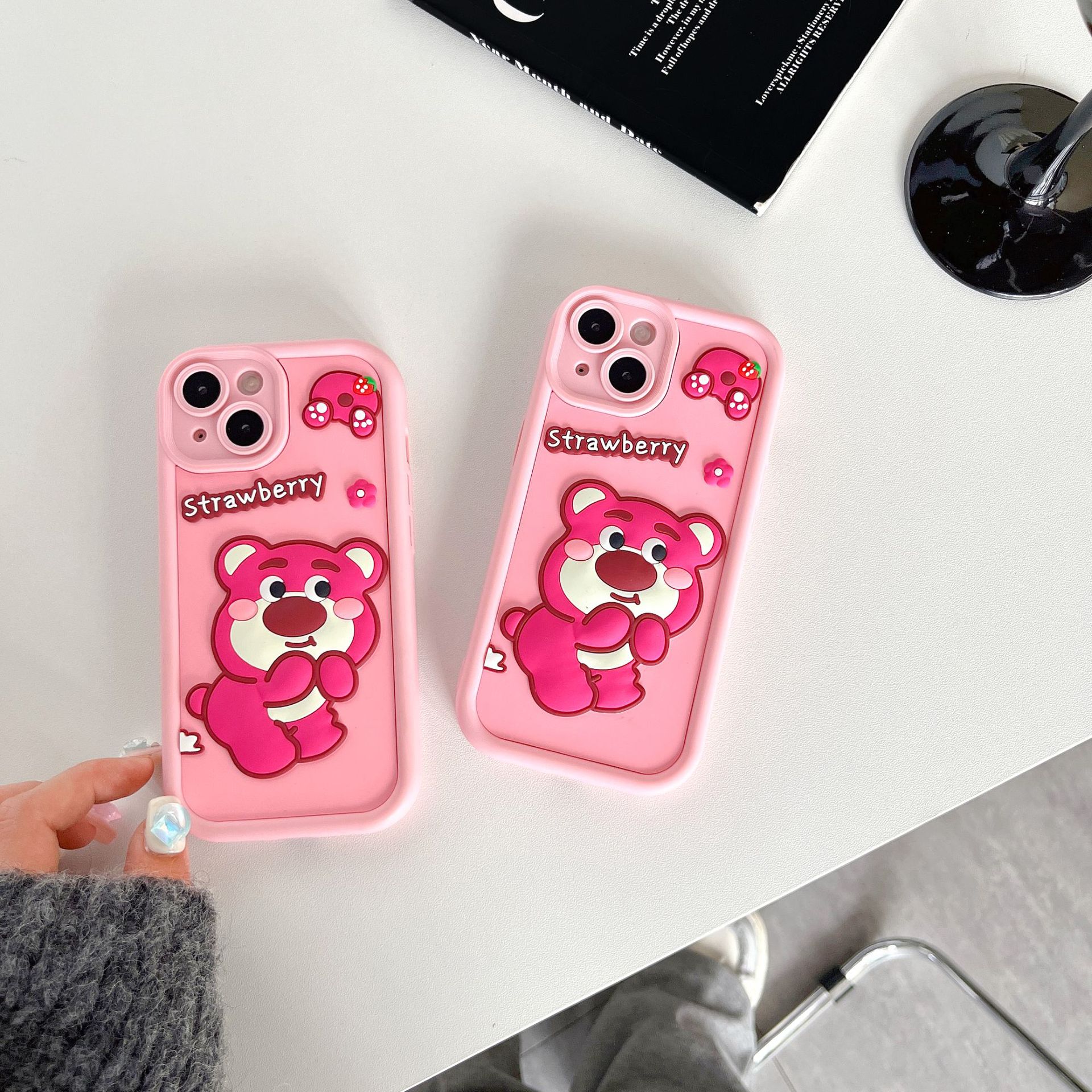 卡通可爱3D立体草莓熊适用15/14promax手机壳苹果13硅胶12/11防摔