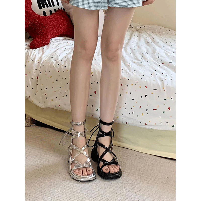 洛丽塔萝莉罗马厚底凉鞋女夏高帮交叉带平底仙女风配裙子