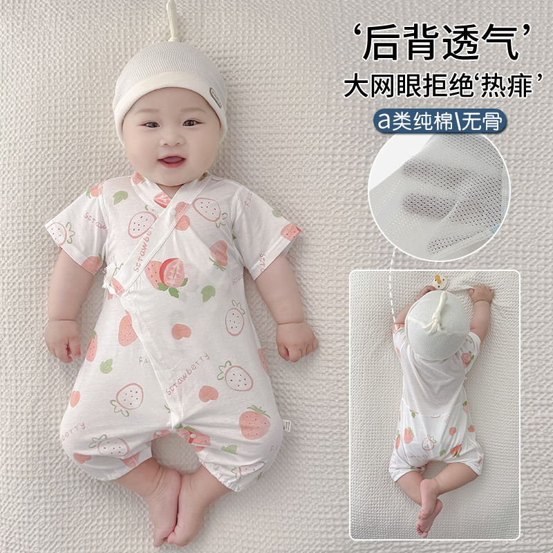 婴儿夏季连体衣短袖蝴蝶哈衣新生儿衣服护肚薄款和尚服宝宝空调服