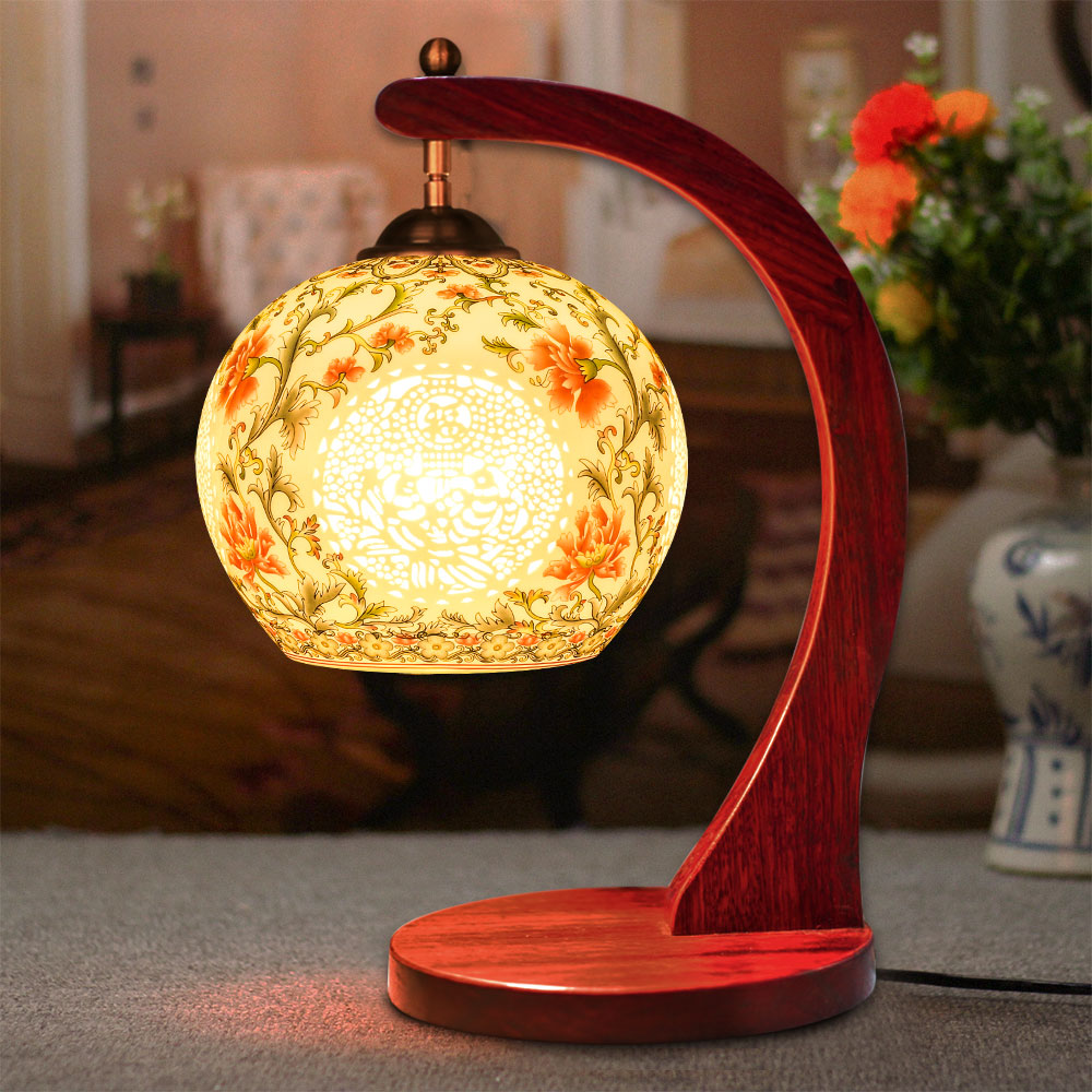实木红花梨台灯温馨陶瓷卧室床头灯客厅书房装饰台灯