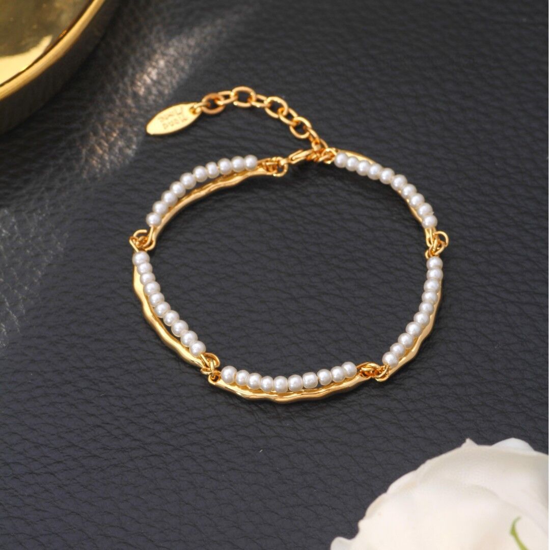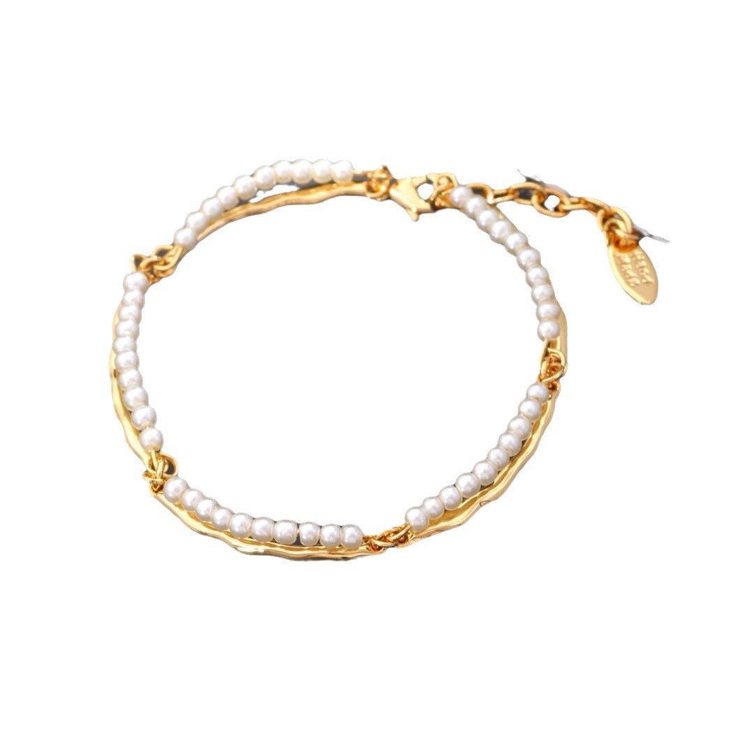 《高版本不掉色18k金厚度0.05+电泳+抛数++4》双层链条珍珠手链