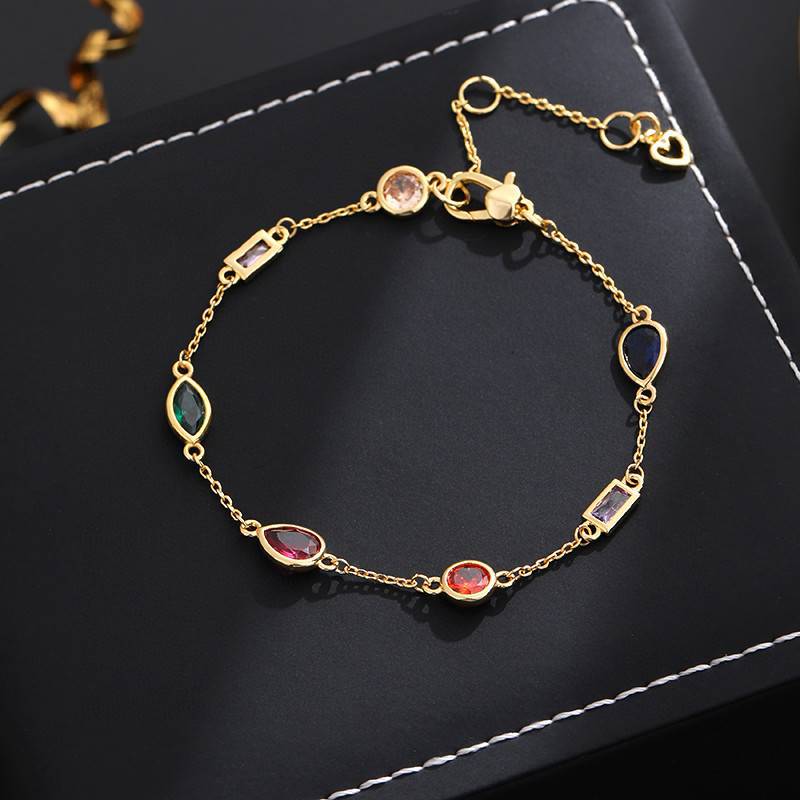 高版本真金电镀厂家直销欧美拼色玻璃石气质彩虹色手链