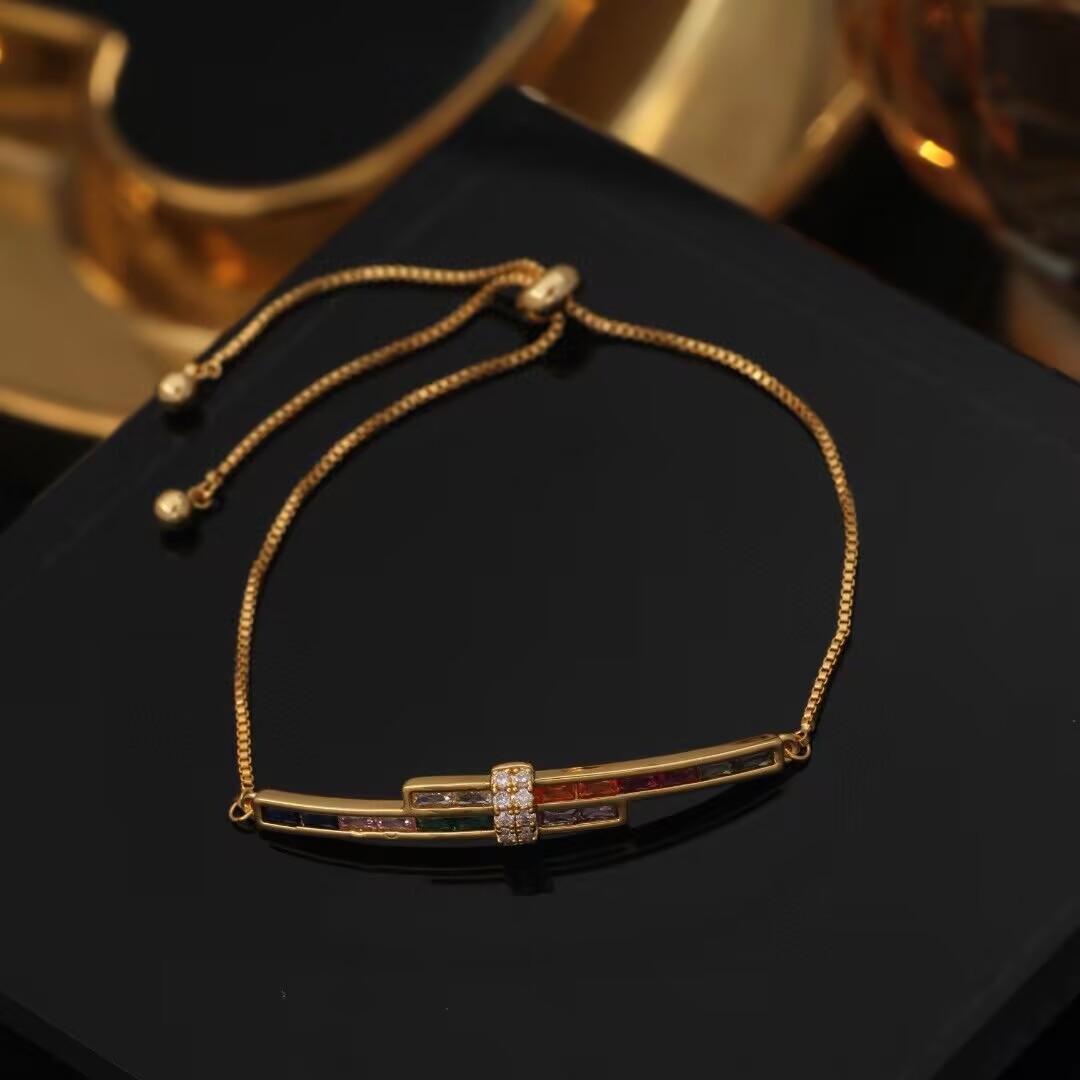 新款铜手链女笑脸女小众设计感轻奢手链平衡木吊坠防过敏简约手链