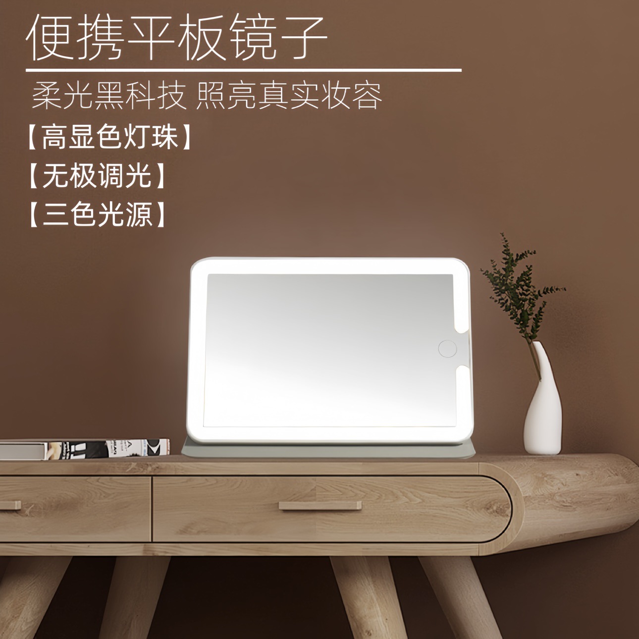 跨境桌面led化妆镜补光皮套便携镜子三色调光可旋转折叠