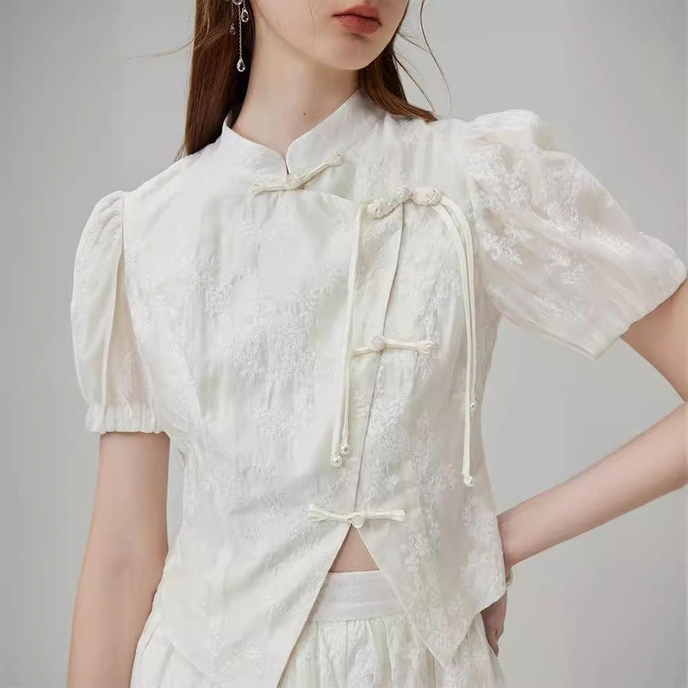 新中式夏季立领提花上衣气质小众高级质感国风女衬衫