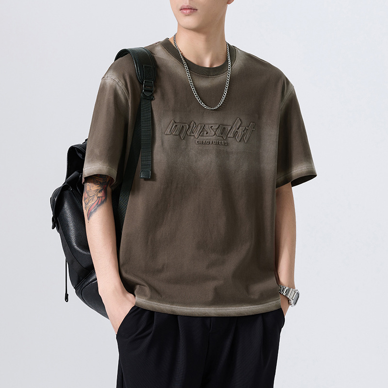 重磅水洗短袖t恤男士夏季2025新款宽松大码高端衣服美式压花体恤