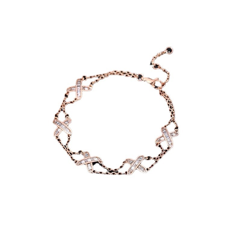 高版本真金电镀双层交叉手链女韩版简约镶钻闺蜜手环